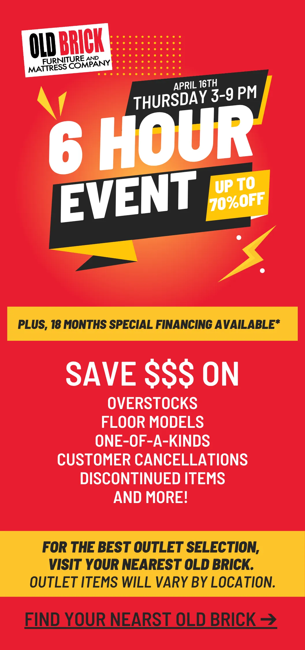CLEARANCE - NO RETURNS, SERVICE OR EXCHANGES. FINAL SALE. PAID IN FULL & NON-REFUNDABLE. CLEARANCE DELIVERY CHARGE APPLIES. MUST BE PICKED-UP OR DELIVERED WITHIN 10 DAYS. SPECIAL FINANCING AVAILABLE.