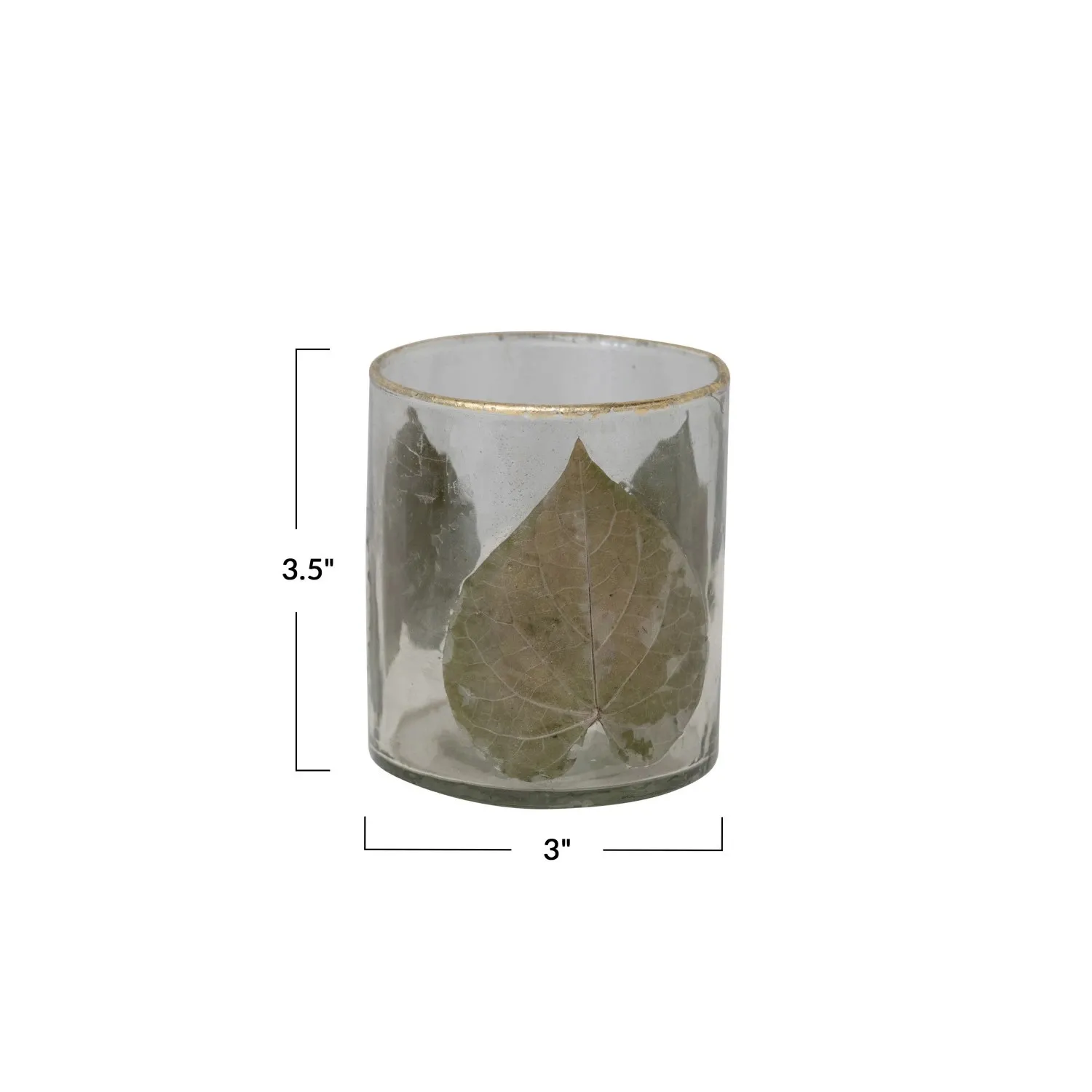 Hand-Blown Glass Votive Holder w/ Embedded Peepal Leaves & Gold Foil Edge by Creative Co-Op