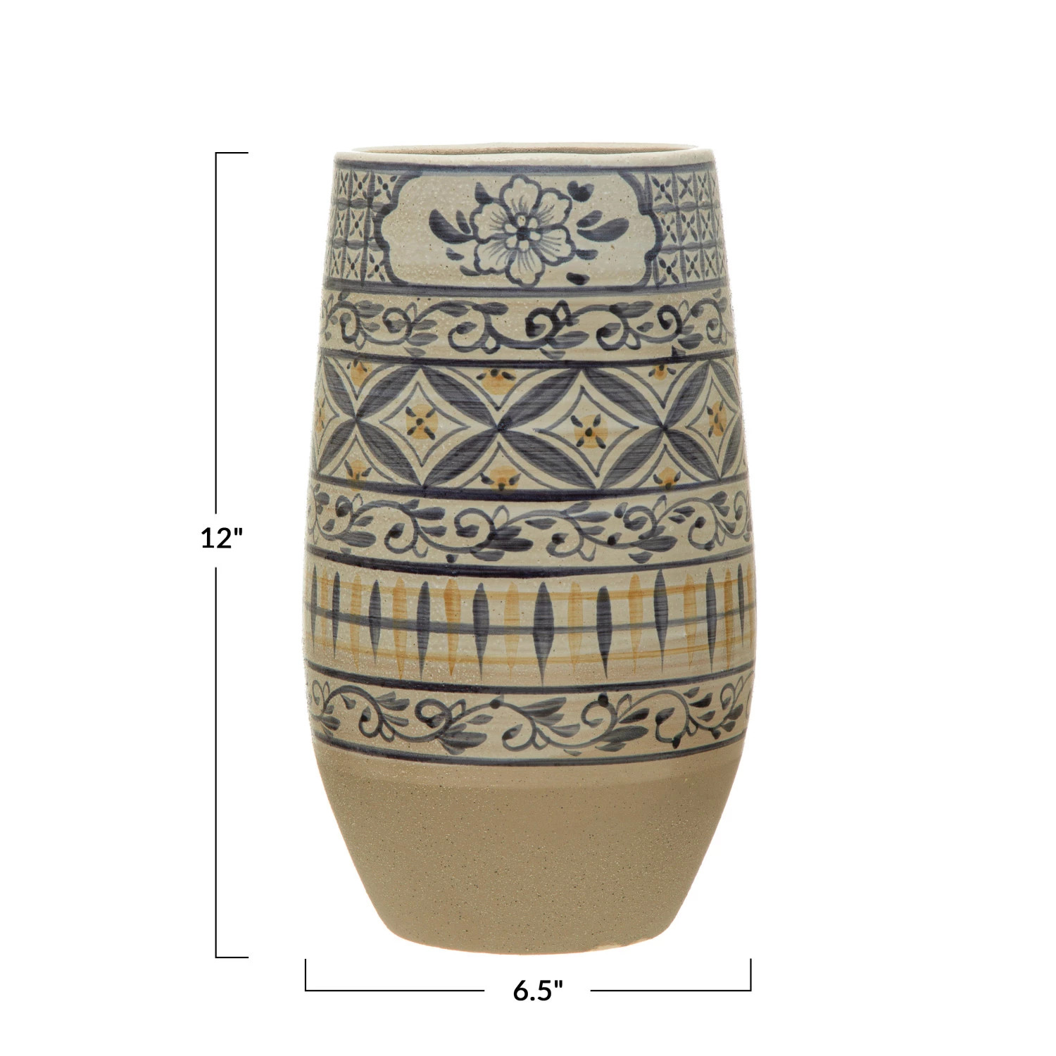 6-1/2" Round x 12"H Hand-Painted Stoneware Vase, Blue & White