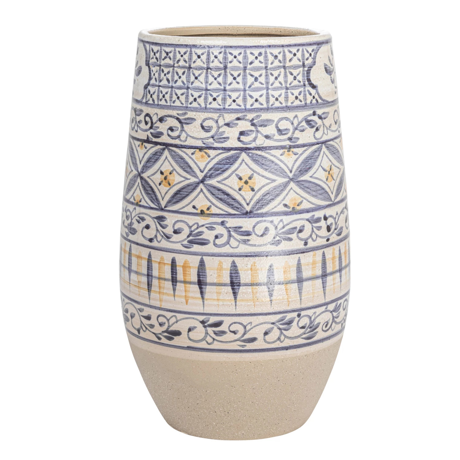 Hand-Painted Stoneware Vase, Blue & White