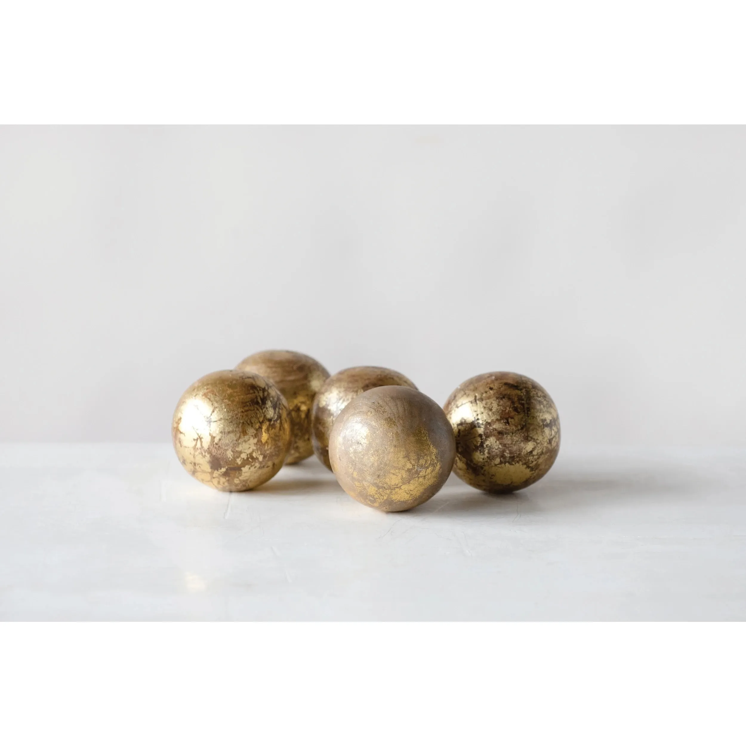 4" Round Mango Wood Orb, Gold Foil Finish (Each One Will Vary)