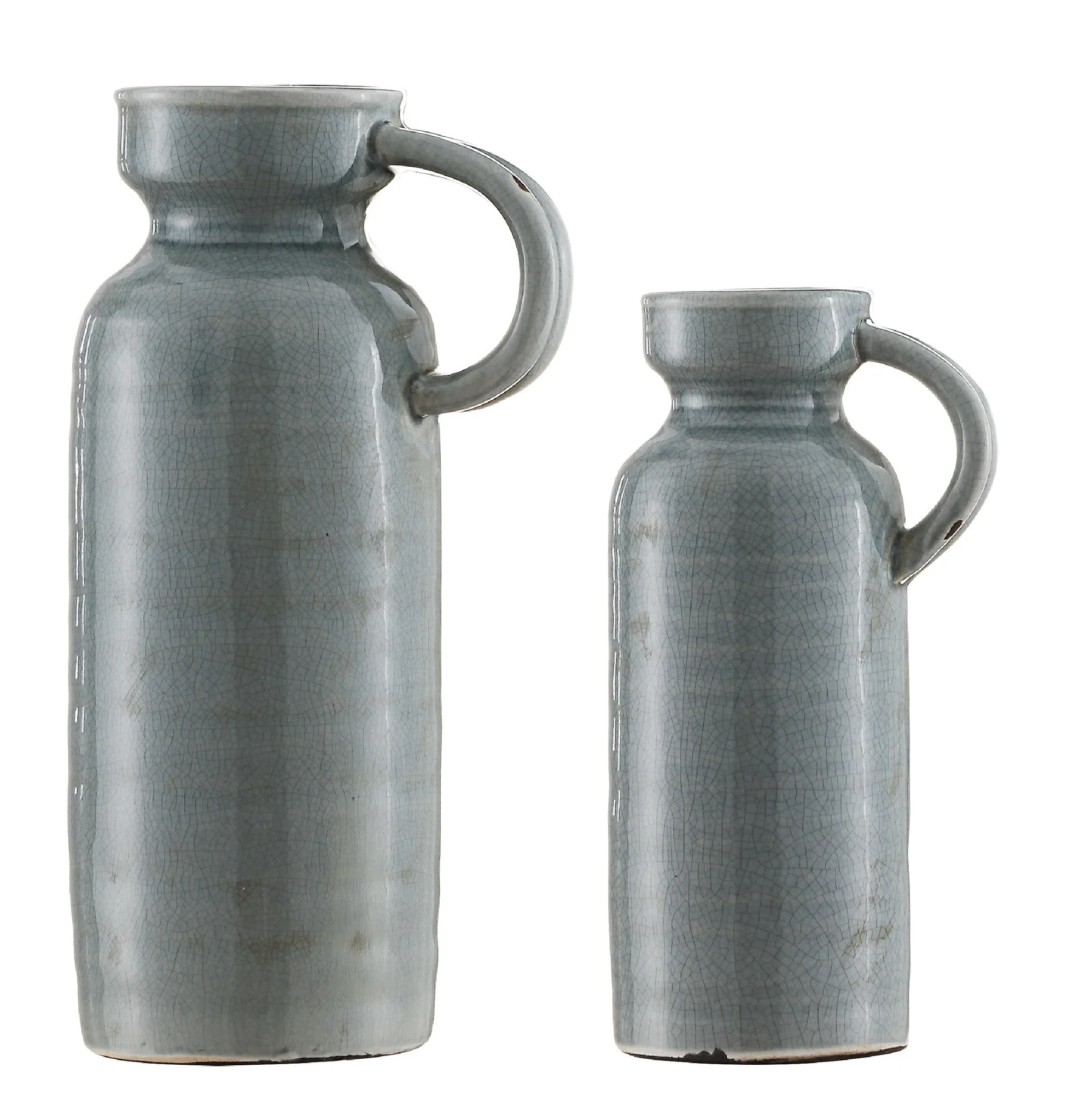 Bozeman Vases L:) 8 x 5.5 x 15" S:) 6 x 4.5 x 12",Ceramic Soft Blue Crackle Ceramic Finish