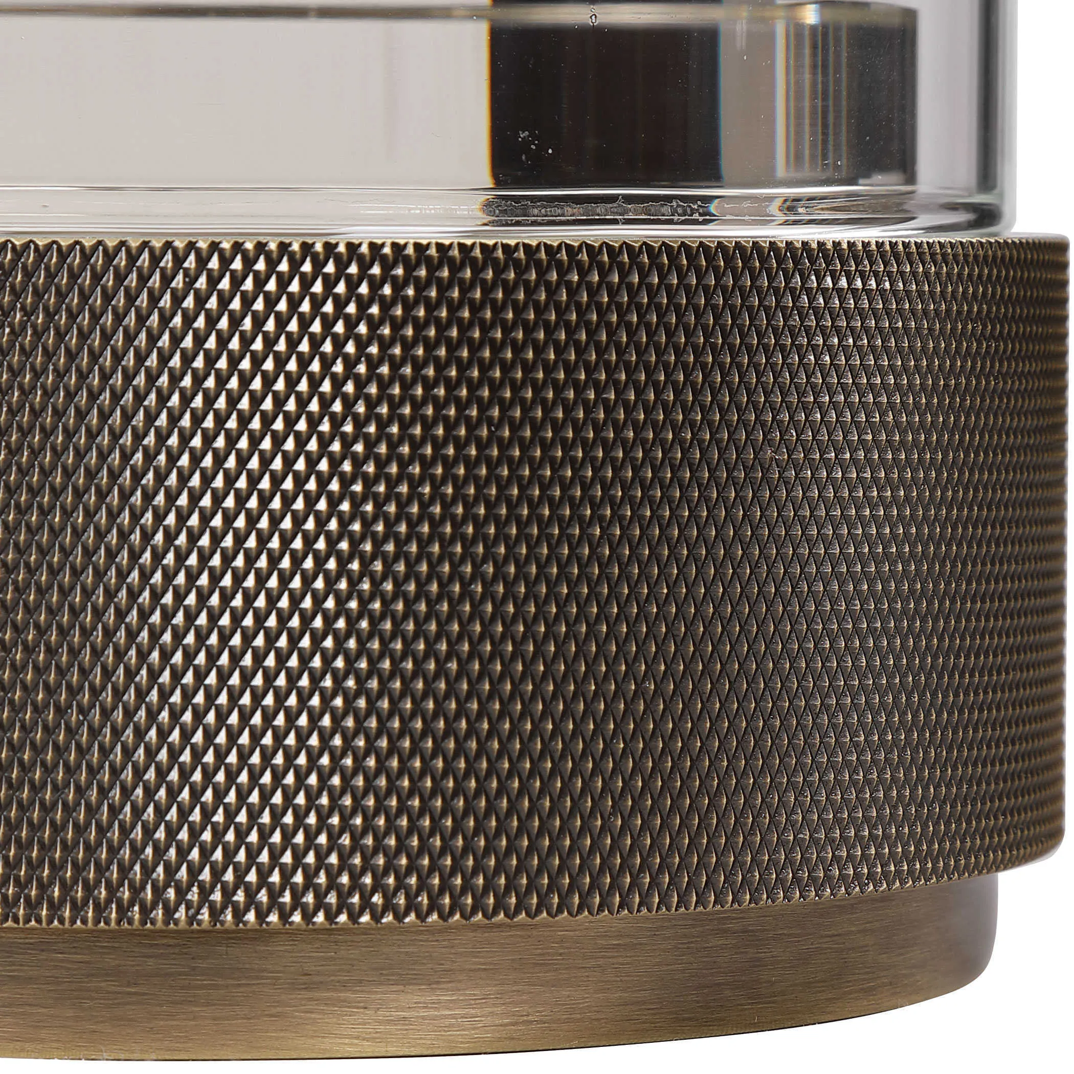 Sophisticated and traditional, these candleholders feature an iron base finished in antique brushed brass, accented by crystal details and a clear glass hurricane. Sizes: S-5x11x5, L-5x14x5