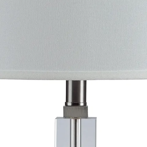 A chic take on classic candlestick style, this crystal table lamp is sheer perfection with a clean, transitional aesthetic. Touches of metal and a crisp, fabric shade keep the look light and lovely.
