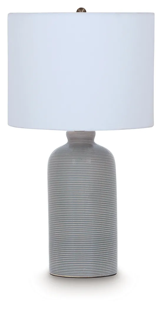 Cool tones, clean lines and a glow that feels just right. Designed for simplicity and function, this table lamp pairs a gray-blue ceramic base with a crisp shade for a look that’s timeless yet modern. A textured pattern on the base adds a subtle pop of pattern.