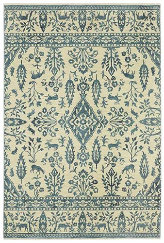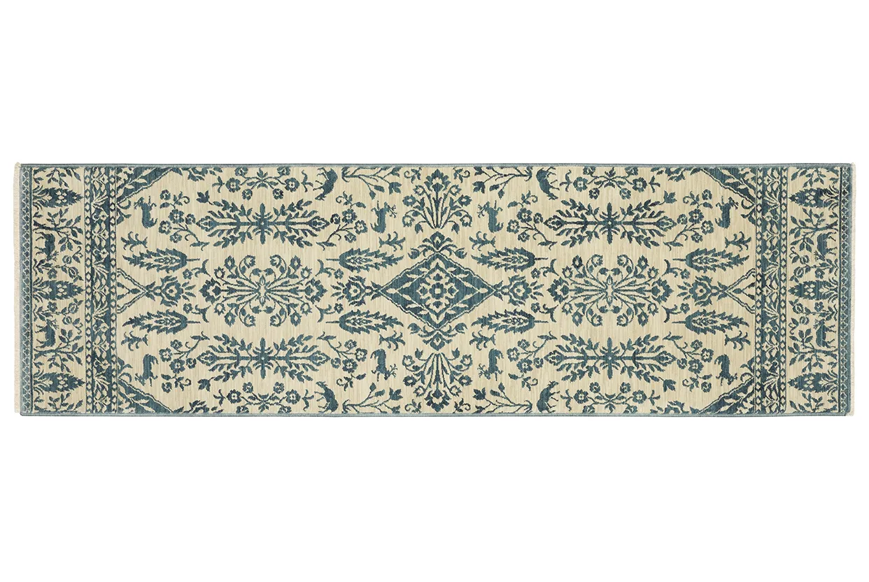 The Francesca collection features softened jewel tones of sapphire and turquoise, muted gold, and cinnabar alongside nature-inspired neutrals and an earthy brown and green. It is power-loomed of space dyed, super soft polypropylene. Francesca showcases updated traditional patterns highlighting open fields, updated borders, and some folk-art flair.