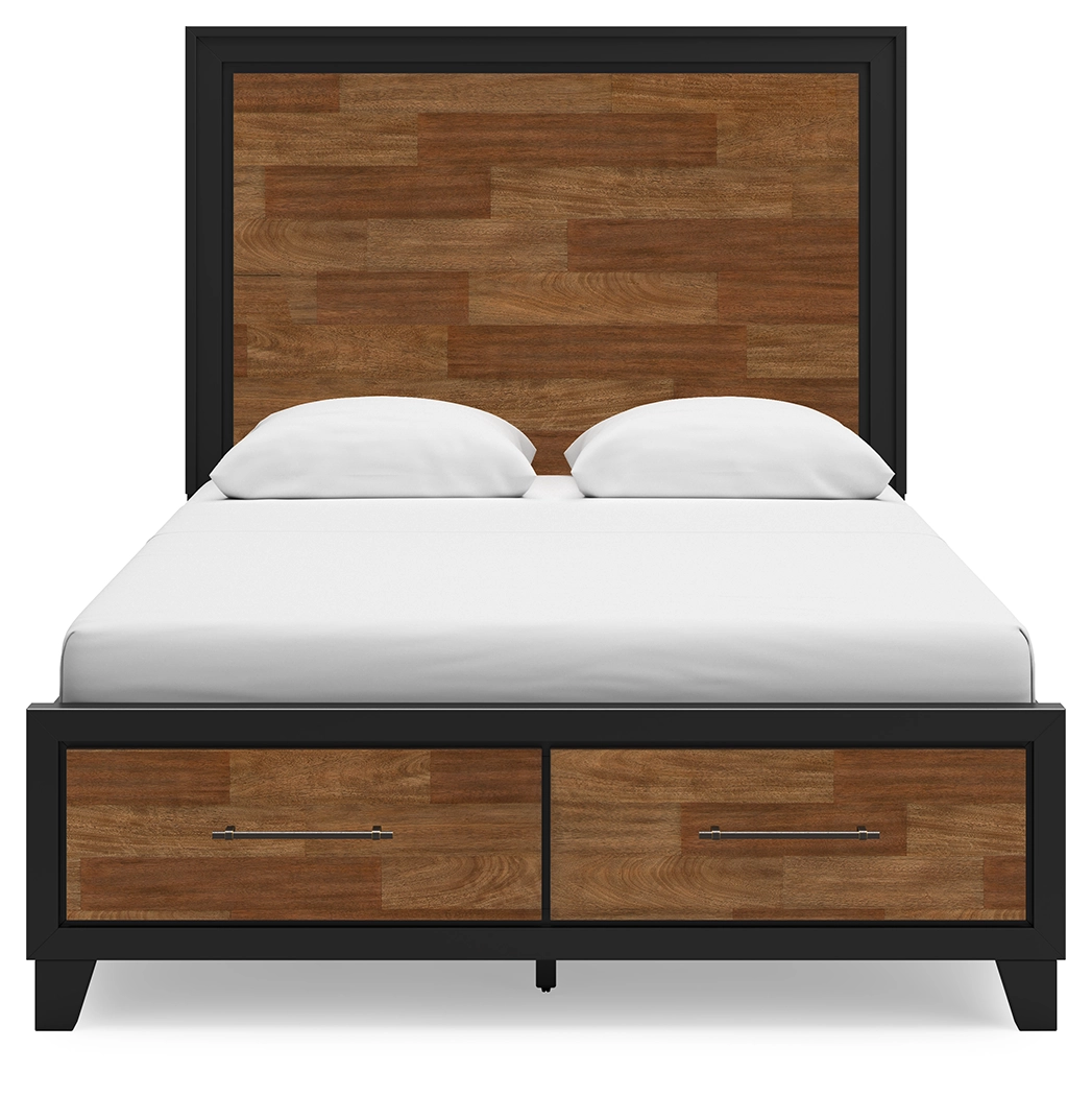Experience the captivating allure of this bedroom package, an effortless blend of casual and refined aesthetics. Its two-tone finish combines satin black with a rich brown wood tone for a modern, relaxed vibe that you'll love waking up to. Perfectly suited for your contemporary home, this set offers a cozy space for reading, lounging and restful nights.