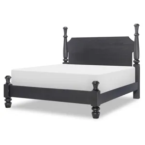 The Country Living Vintage Market Bobbin Post Queen Canopy Bed in Barnwood and Kettle Black by Legacy Classic Furniture is a solid wood canopy bed with turned bobbin posts and an aged two-tone finish. Perfect for farmhouse, cottage, or traditional bedrooms, it showcases timeless craftsmanship, elegant design, and vintage-inspired warmth, reflecting the authentic comfort and charm of the Country Living Collection.