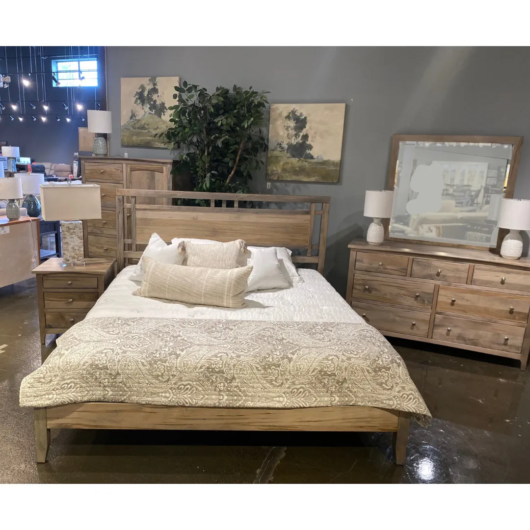 The Atwood Gridwork King Platform Bed - Wormy Maple by MAVIN may be available at Old Brick Furniture & Mattress Co. in the