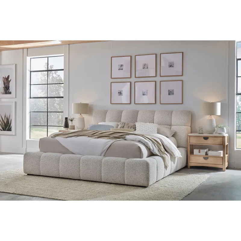 The Parker House Escape Fluffy Upholstered Bed in River Rock brings a soothing, nature-inspired elegance to your bedroom. Wrapped in soft 100% polyester fabric, this beautifully tufted upholstered bed showcases a calming neutral tone that complements a wide range of interiors. Its low-profile silhouette adds a modern, grounded feel, while the kiln-dried hardwood frame provides lasting strength and stability. Designed for both comfort and longevity, the Escape Fluffy Bed embodies the serene, coastal charm that defines the Escape Collection—perfect for creating a restful and inviting retreat.
