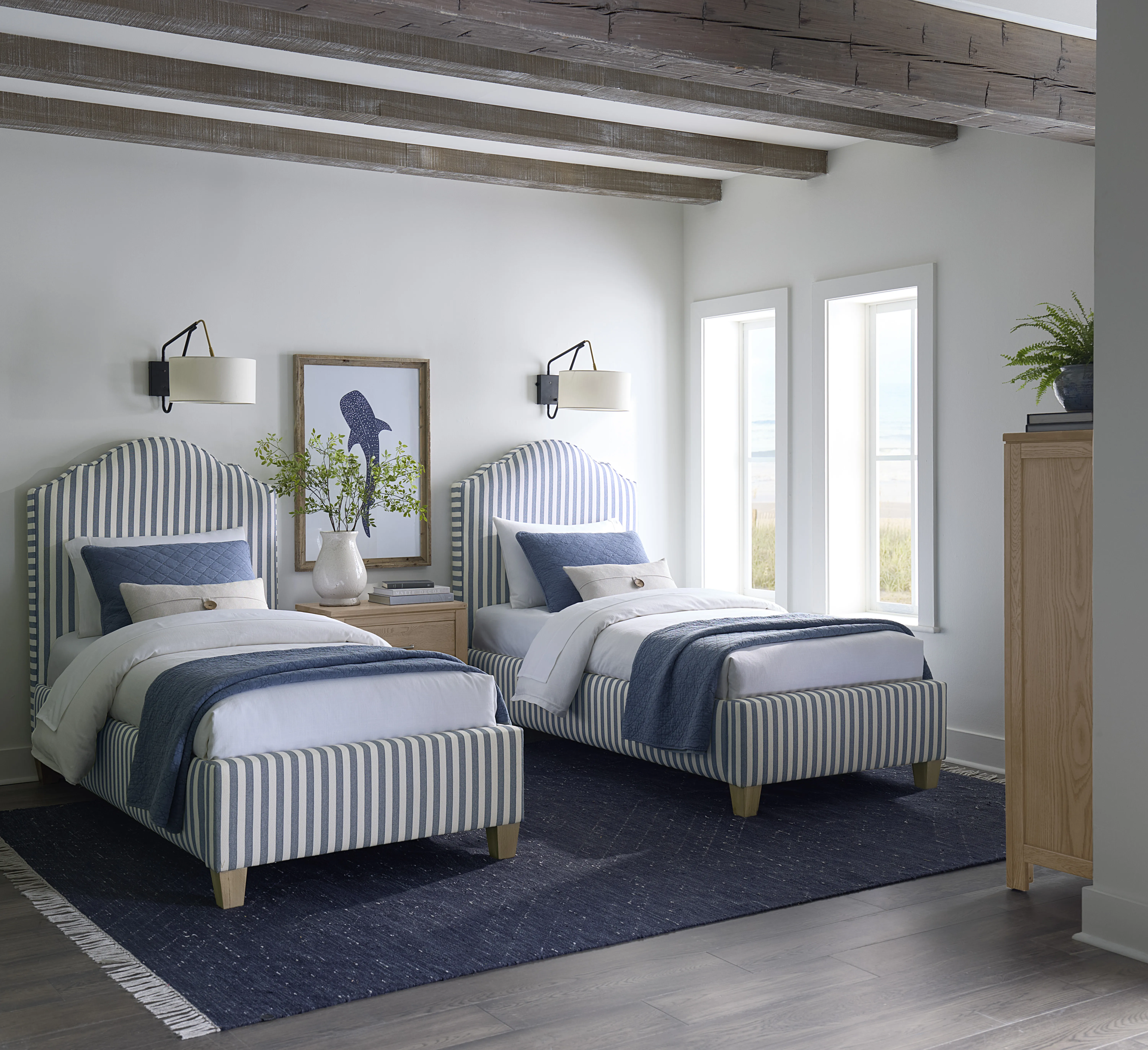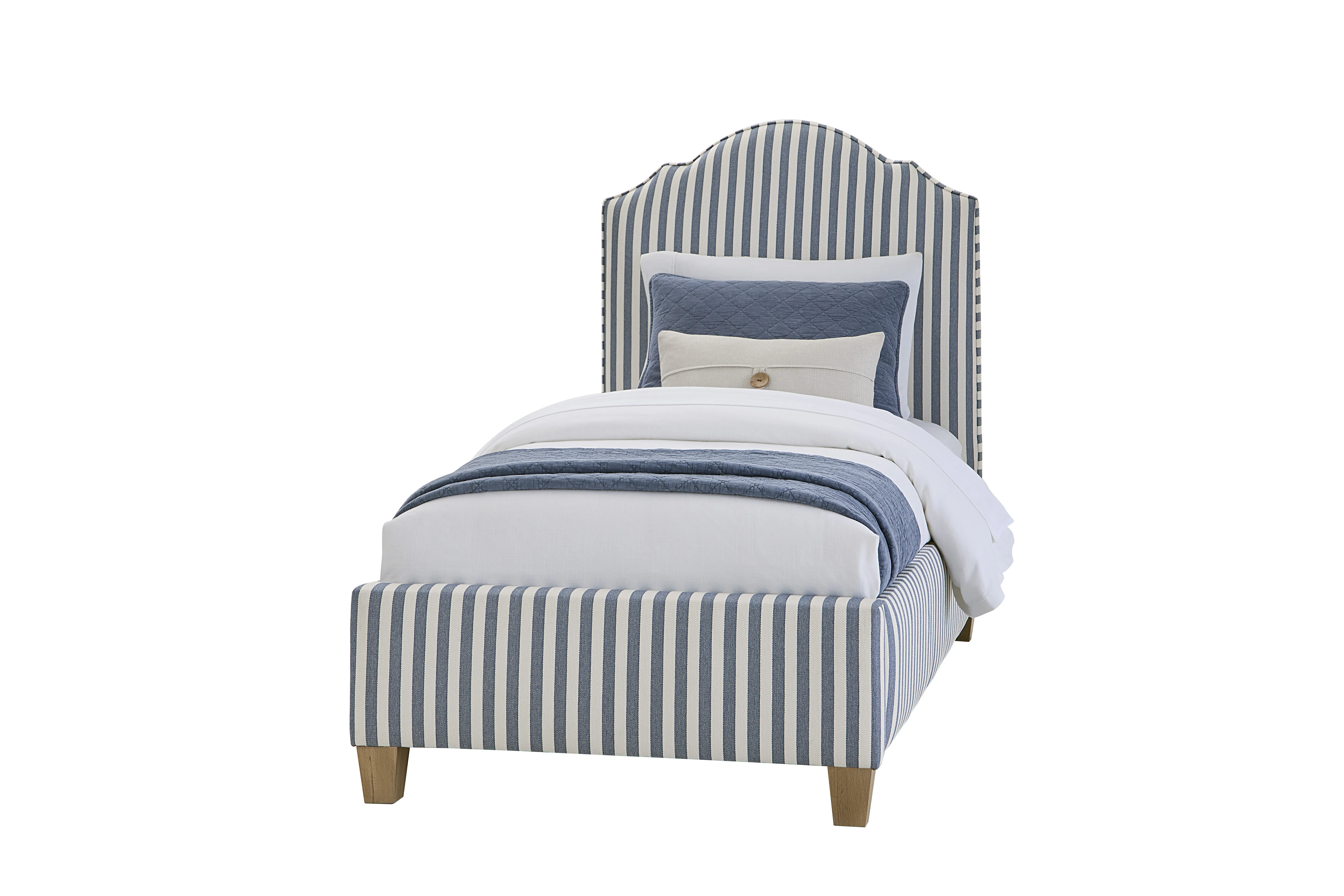 Tide & Timber Upholstered Twin Bed – Blue Stripe / Clear Oak – Vaughan-Bassett Furniture