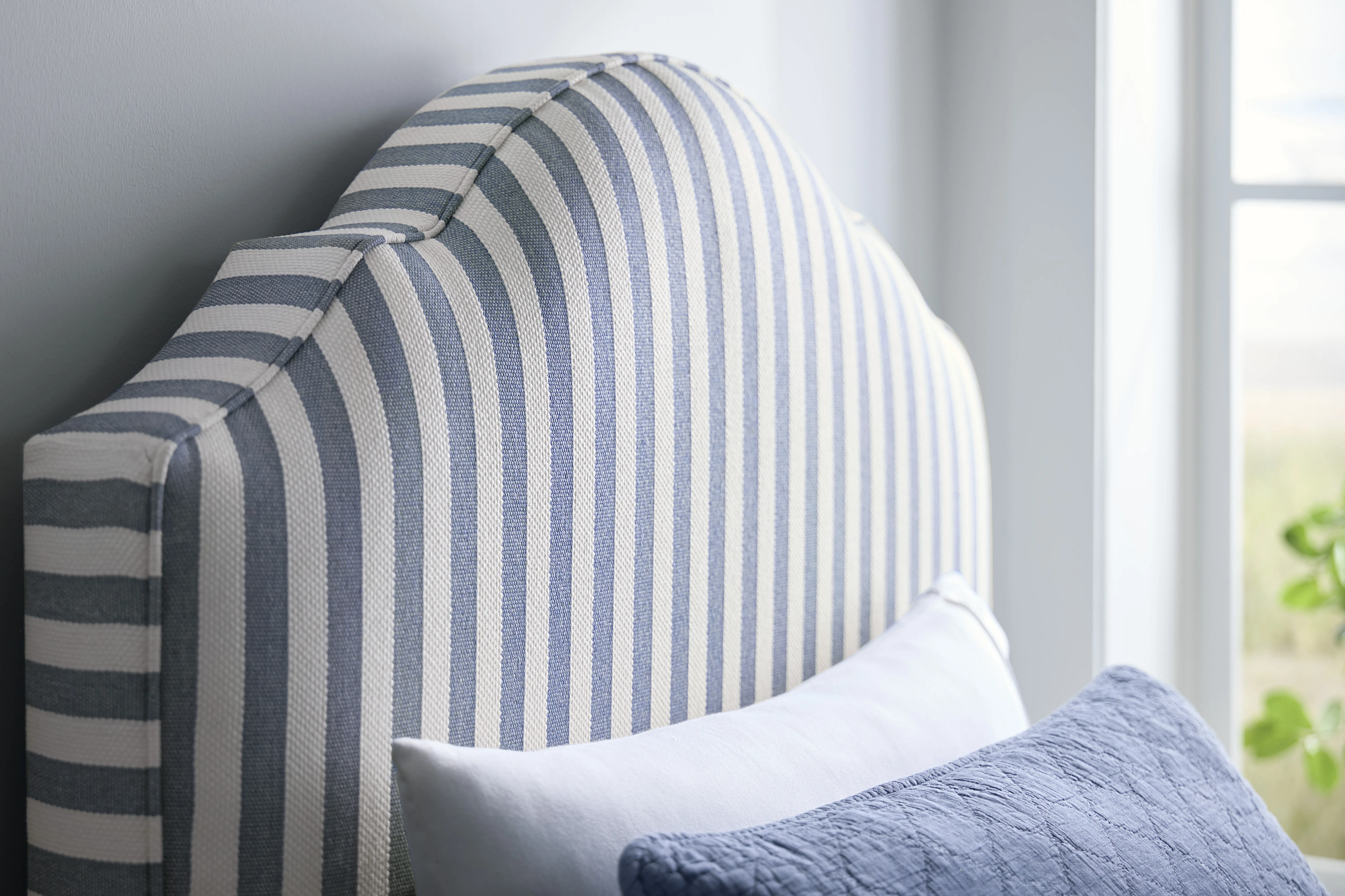 • Upholstered in Revolution’s Blue Stripe performance fabric – stain-resistant, soft, and easy to clean