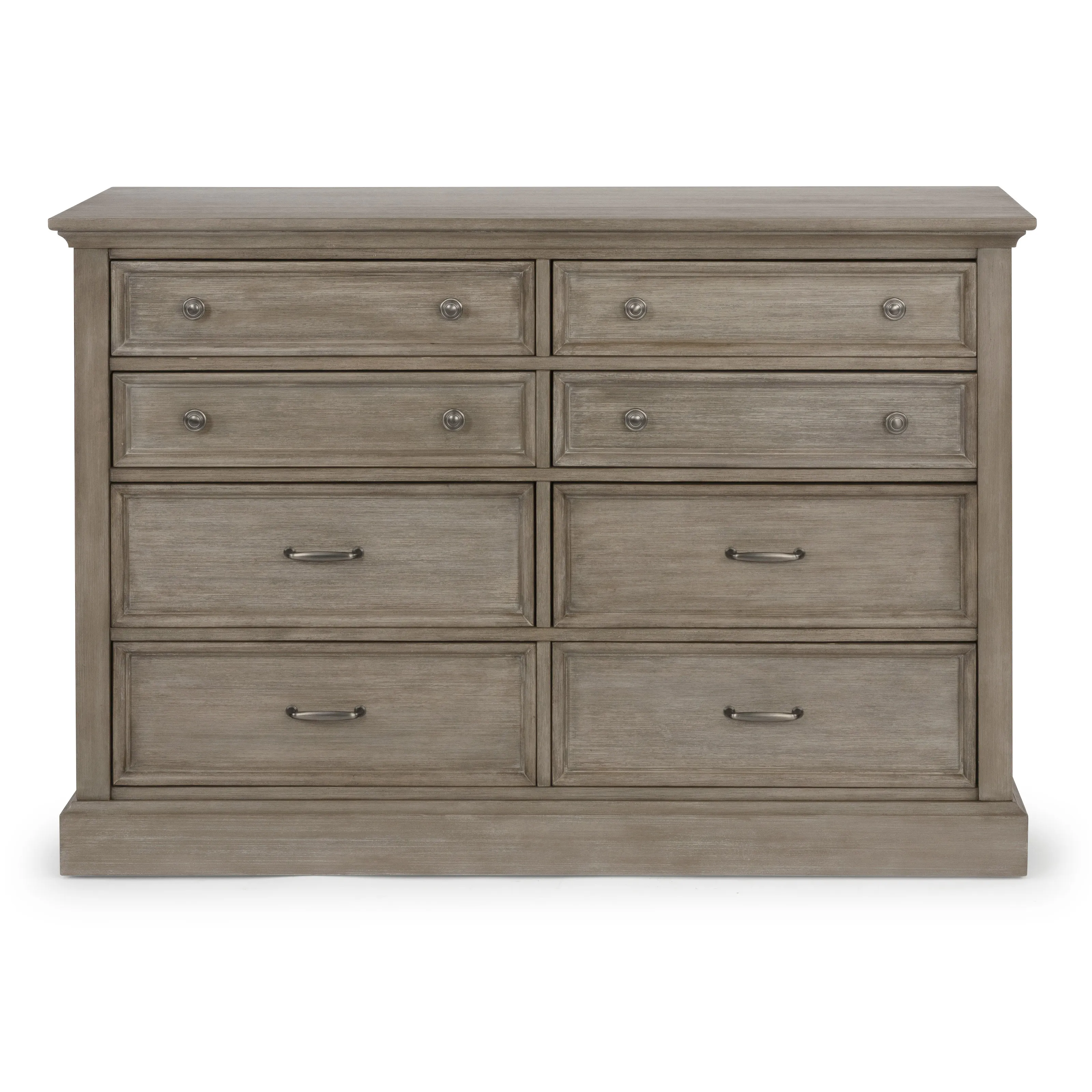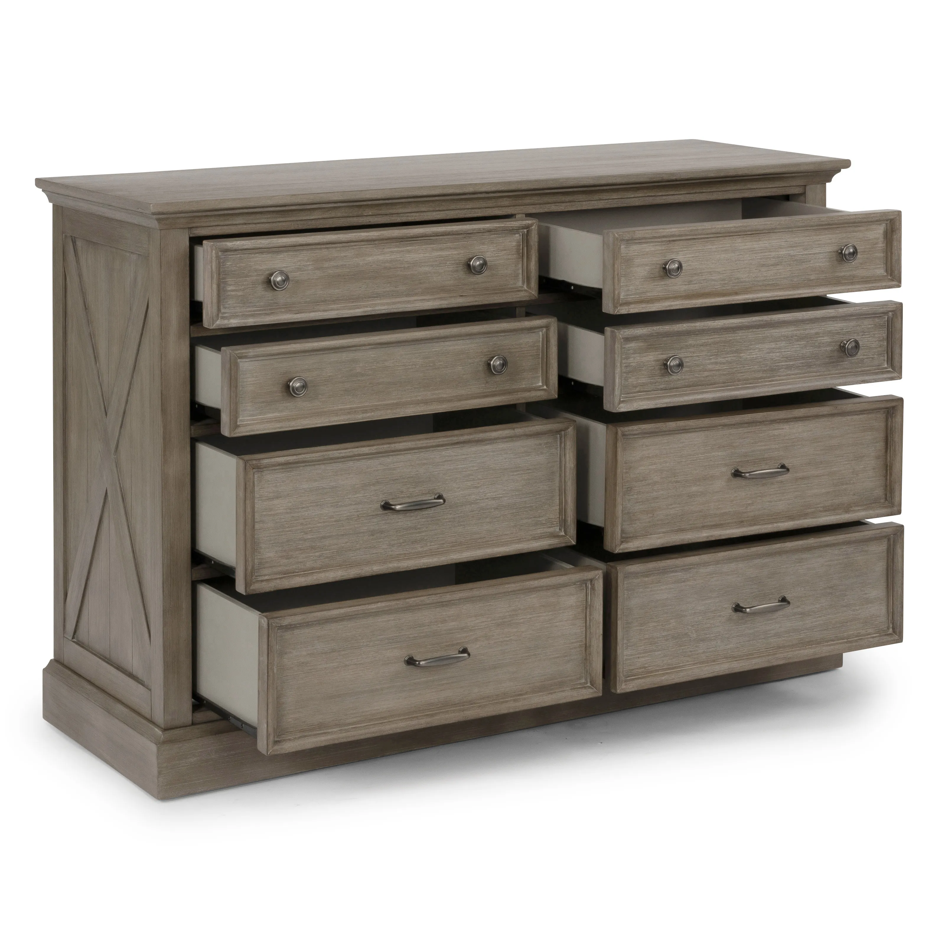 Rustic casual design that is equally at home in a Walker or mid-town loft. The Walker Dresser by homestyles is crafted of mahogany solids and veneers with engineered woods and wire-brushed surfaces, providing a rough-hewn look. Inset wainscot panels with X-frame design. Finished in a multi-colored gray that adds unique highlighting to the design. The top two drawers feature felt-lined bottoms to protect delicate items. Drawers are framed and feature antiqued nickel-finished drawer pulls. Arrives at your door by parcel delivery service. Finish and measurements may vary. Assembly required. Meaures: 36"H x 54"W x 18.75"D.