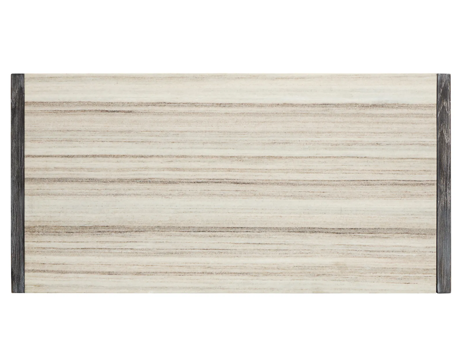 The Plum Creek Drawer Chest by Magnussen Home embodies timeless sophistication and functional design, creating a refined storage solution that enhances any bedroom with its serene elegance. Expertly crafted from hardwood solids and random cathedral white oak veneers, this chest features a striking Ravenwood Black finish accented by burnished bronze hardware and topped with smooth marble, adding a touch of natural luxury. Five drawers—each tinted and finely constructed with French dovetail fronts and English dovetail backs—provide ample space for clothing and accessories, while a felt-lined top drawer keeps delicate items protected. Built for durability with side-mounted ball-bearing glides, a sealed case design, and adjustable levelers on the front feet, this chest offers enduring quality and quiet sophistication. The Plum Creek Drawer Chest pairs beautifully with the full Plum Creek Bedroom Collection, blending modern tranquility and lasting craftsmanship.