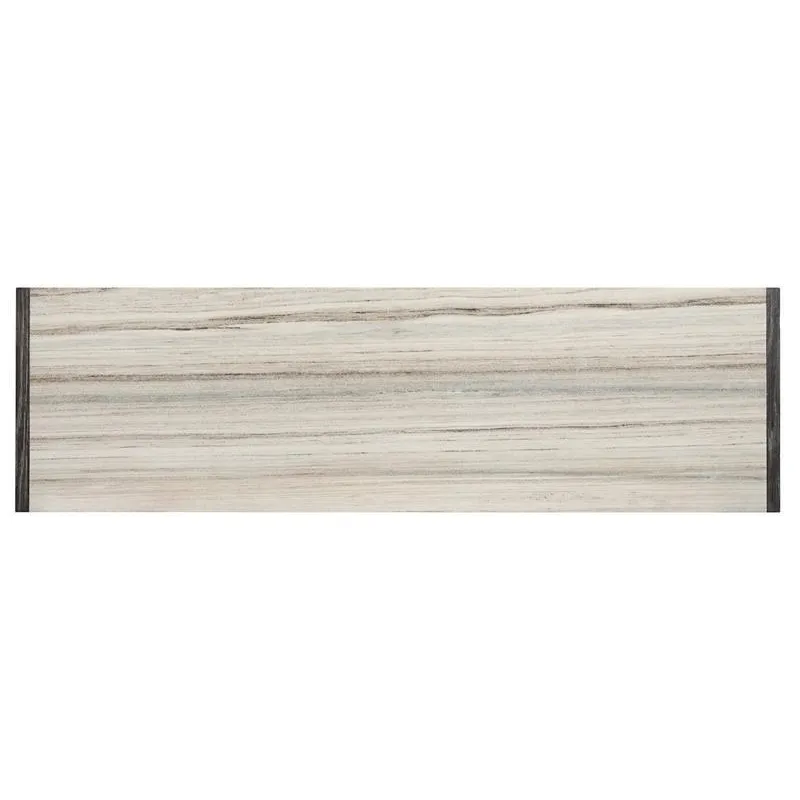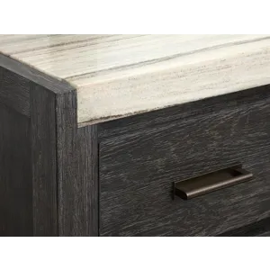 The Plum Creek Drawer Dresser by Magnussen Home combines timeless sophistication with serene, livable comfort, creating a statement of understated luxury for the modern home. Crafted from hardwood solids and random cathedral white oak veneers, this elegant piece features a Ravenwood Black finish accented by burnished bronze hardware and a refined marble top, bringing texture and contrast to its calm, transitional design. Six spacious drawers—with the appearance of eight—offer generous storage, while the two felt-lined top drawers provide a safe space for delicate items. Built with French dovetail fronts, English dovetail backs, and side-mounted ball-bearing glides, every drawer opens smoothly and securely. The sealed case construction ensures long-lasting strength and stability, making this dresser as functional as it is beautiful—a perfect companion to the Plum Creek Bedroom Collection.