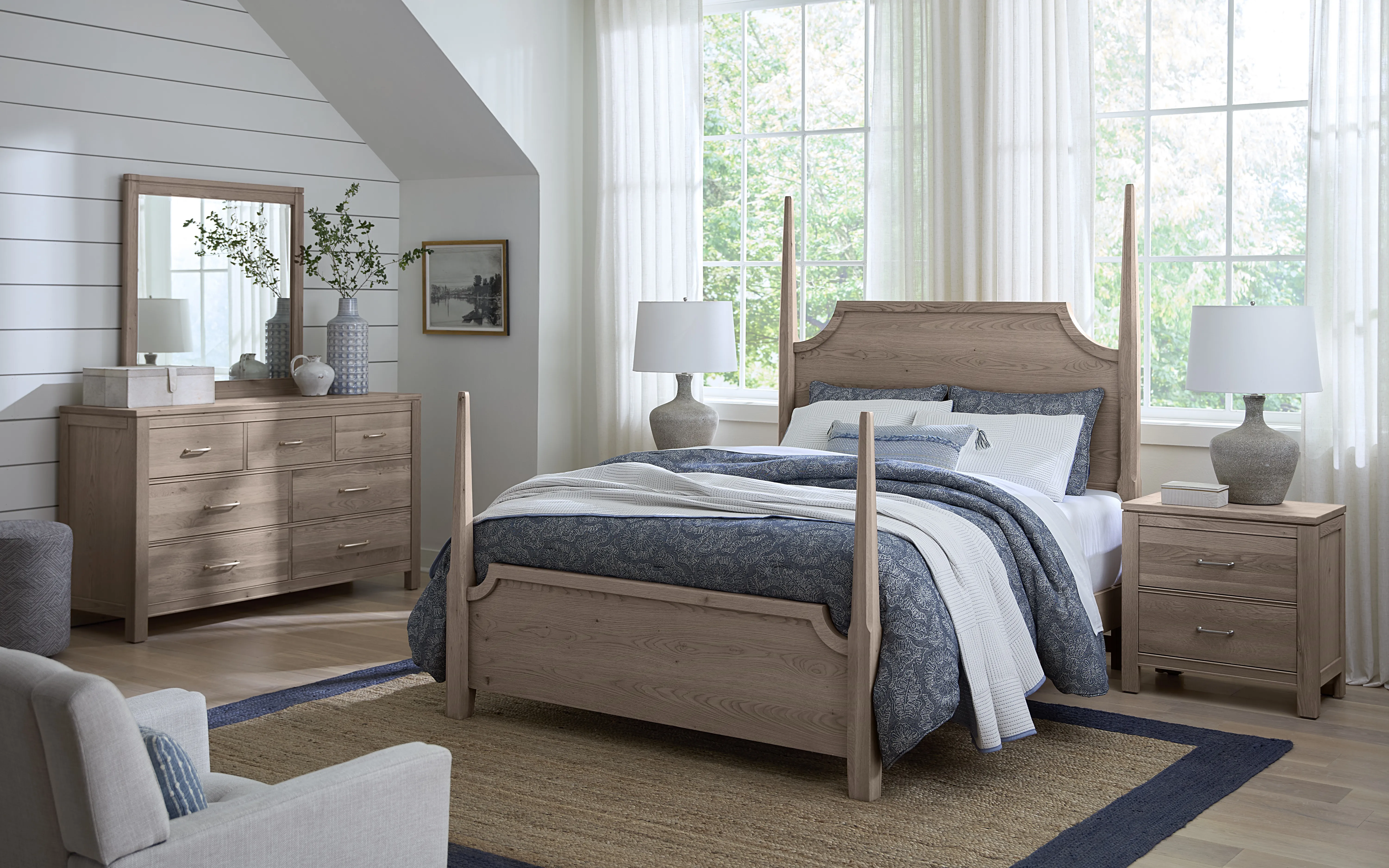 The Tide & Timber 7 Drawer Dresser by Vaughan-Bassett is a solid wood dresser featuring French dovetail drawers, self-closing glides, and a modern reveal design with beaded rails. Available in Clear Oak or Grey Oak finishes, this American-made dresser combines sustainable craftsmanship, generous storage, and timeless style, ideal for farmhouse, transitional, or contemporary bedrooms.