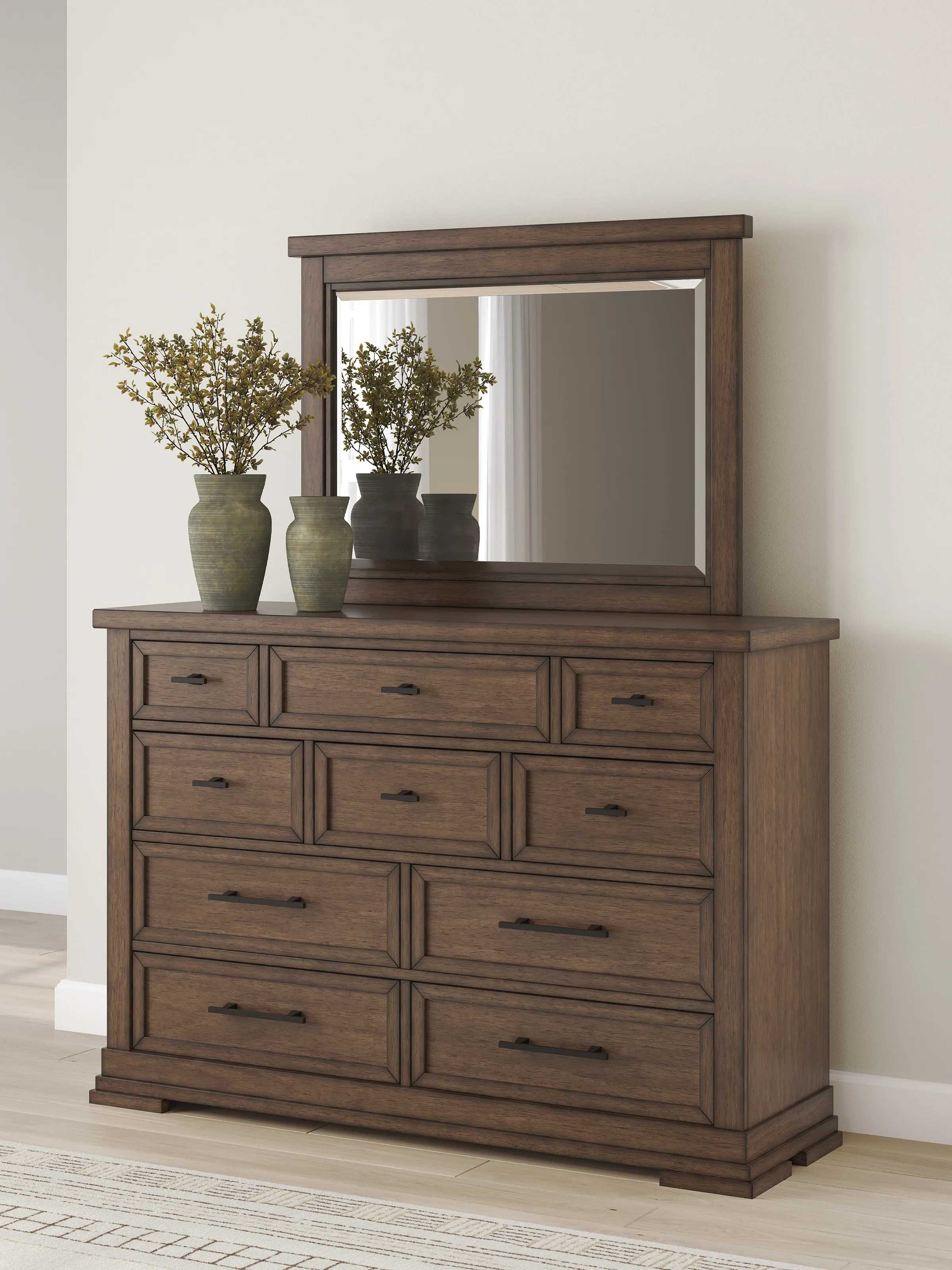 Style, simplicity and charm are hallmarks of this mirror. Created with casual spaces in mind, it has the versatility to suit styles from craftsman to modern farmhouse. The rich brown finish aligns with your refined-meets-relaxed approach to everyday style. And for a timeless touch, picture frame detailing accommodate your styling needs. Pairs with other items in the series to make a dresser and mirror kit.
