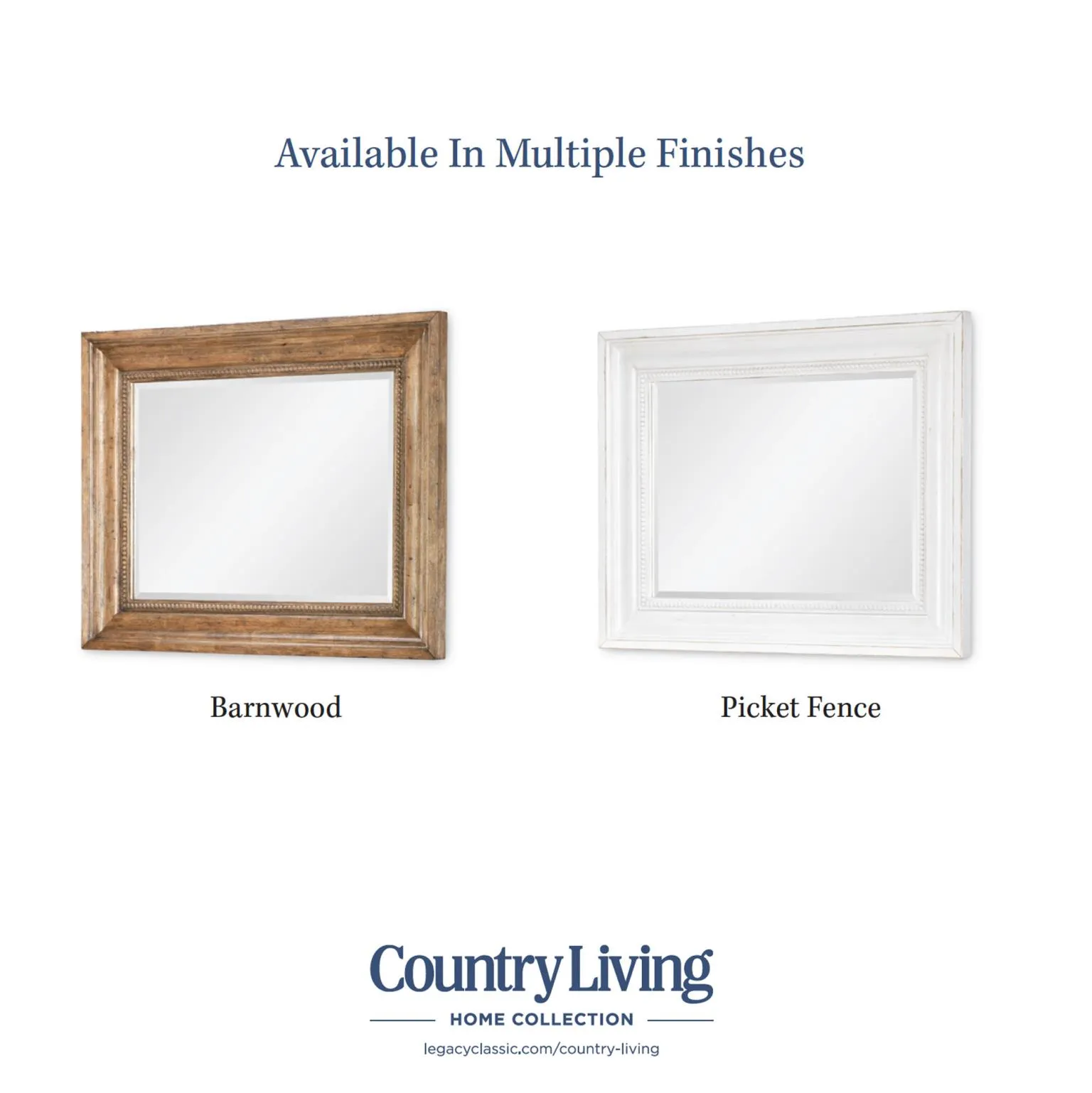 The Country Living Vintage Market Framed Mirror by Legacy Classic Furniture adds farmhouse charm and vintage-inspired elegance to any space. Available in Barnwood or Picket Fence finishes, this bead-trimmed rectangular mirror with beveled glass pairs beautifully with Vintage Market dressers or standalone wall décor, bringing the warm, cozy, and timeless appeal of Country Living style to your home.