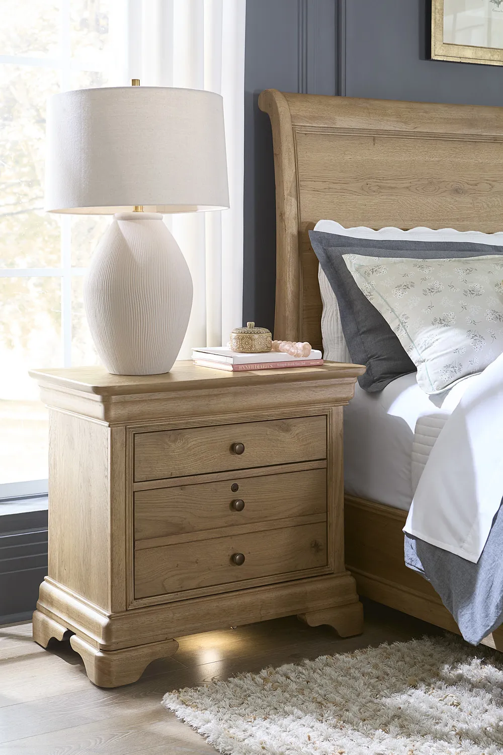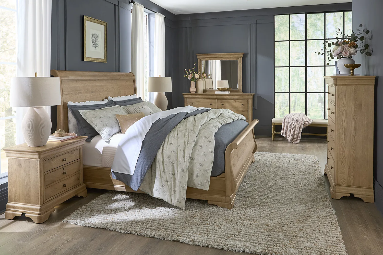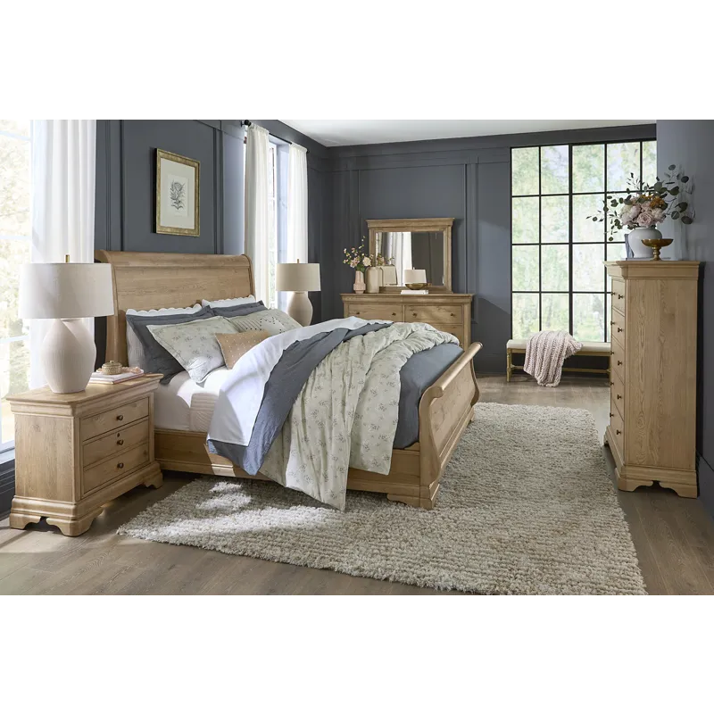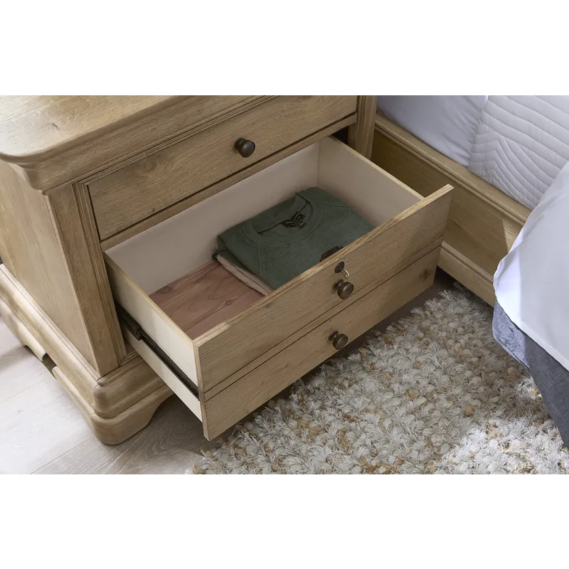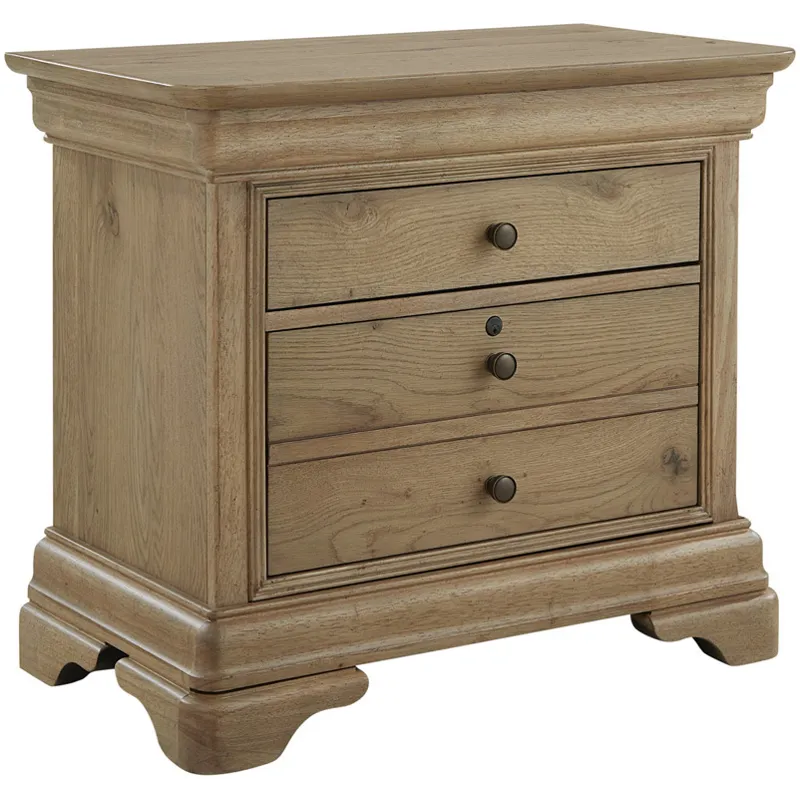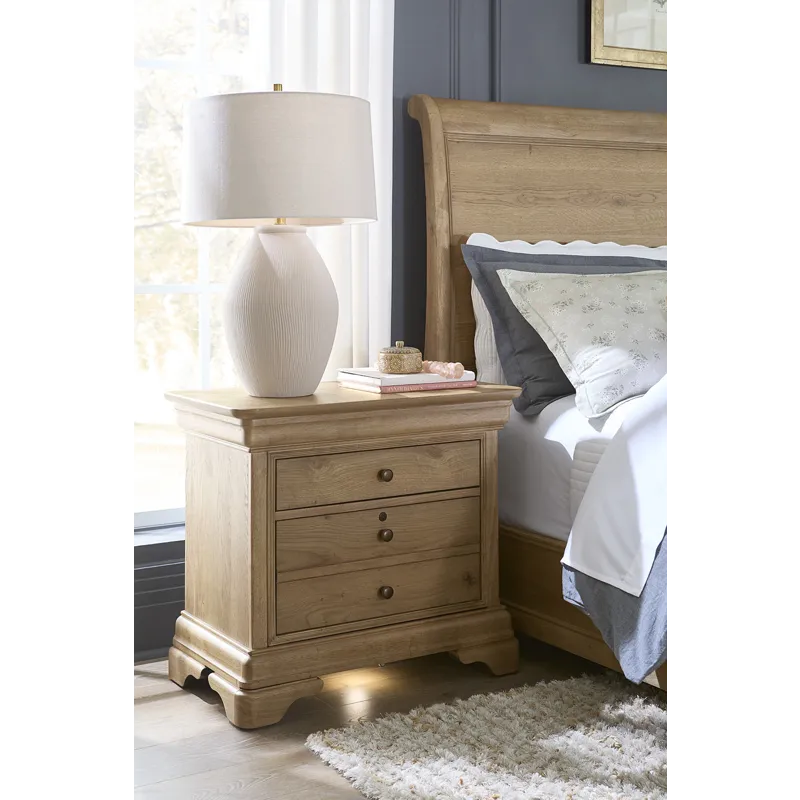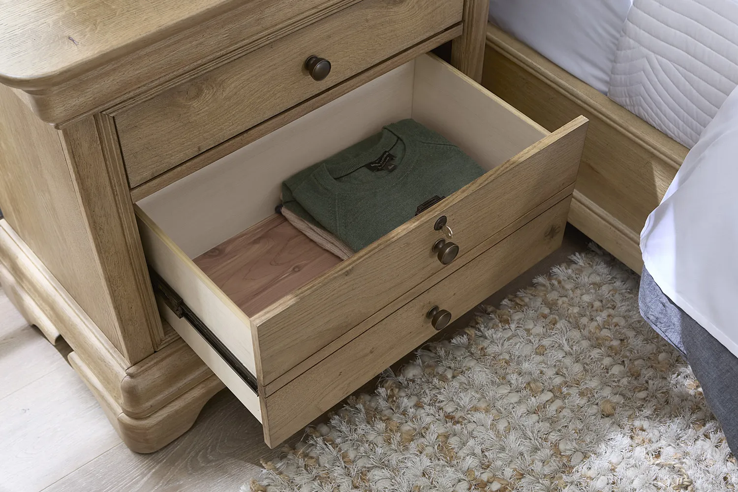 Blending traditional elegance with modern features, the Chateau Philippe Nightstand is the perfect companion to the sleigh bed, dresser, and chest. It offers a balance of beauty and practicality for today’s bedroom.