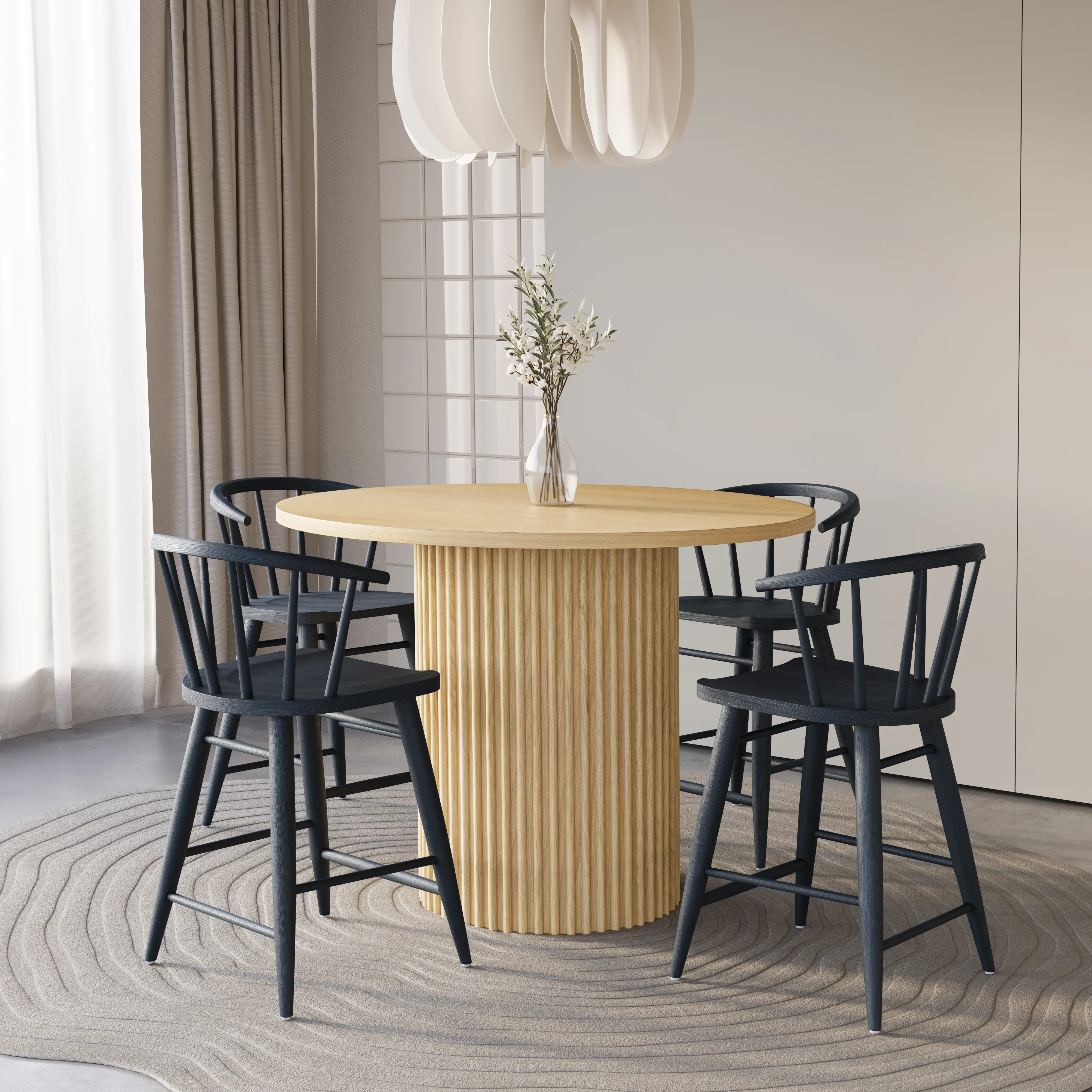The Fitz Traditional Solid Wood Curved Back Spindle Counter Height Barstool brings enduring craftsmanship and timeless style to your culinary space. Expertly crafted from solid rubberwood, this barstool offers lasting durability while celebrating the natural beauty of the wood grain. The gracefully curved back delivers supportive comfort, blending traditional spindle detailing with a refined, modern silhouette. Thoughtfully designed for everyday living and elevated entertaining, the Fitz Barstool is perfectly scaled for kitchen islands and counter-height tables. Available in four versatile finishes, it complements a range of interiors from rustic to contemporary. A smooth, hand-applied finish highlights the meticulous craftsmanship and solid wood construction, making the Fitz Barstool a sophisticated and welcoming addition to any setting.