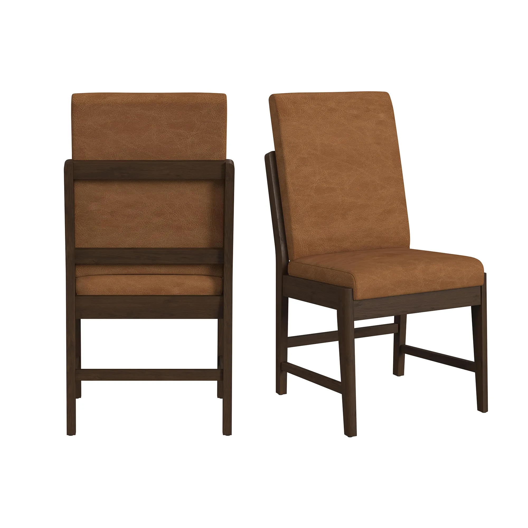 Accent your dining space with the sophisticated mid-century modern design of the Brisbane Dining Side Chair. With a frame crafted from durable, solid wood, this piece blends clean lines and warm tones for a modern and inviting look. The exposed wooden frame adds aesthetic appeal, while the quality faux leather upholstery and supportive cushioning are designed to enhance comfort. Durable, elegant, and thoughtfully designed, the Brisbane Dining Side Chair elevates your dining space with its ageless beauty and refined craftsmanship.
