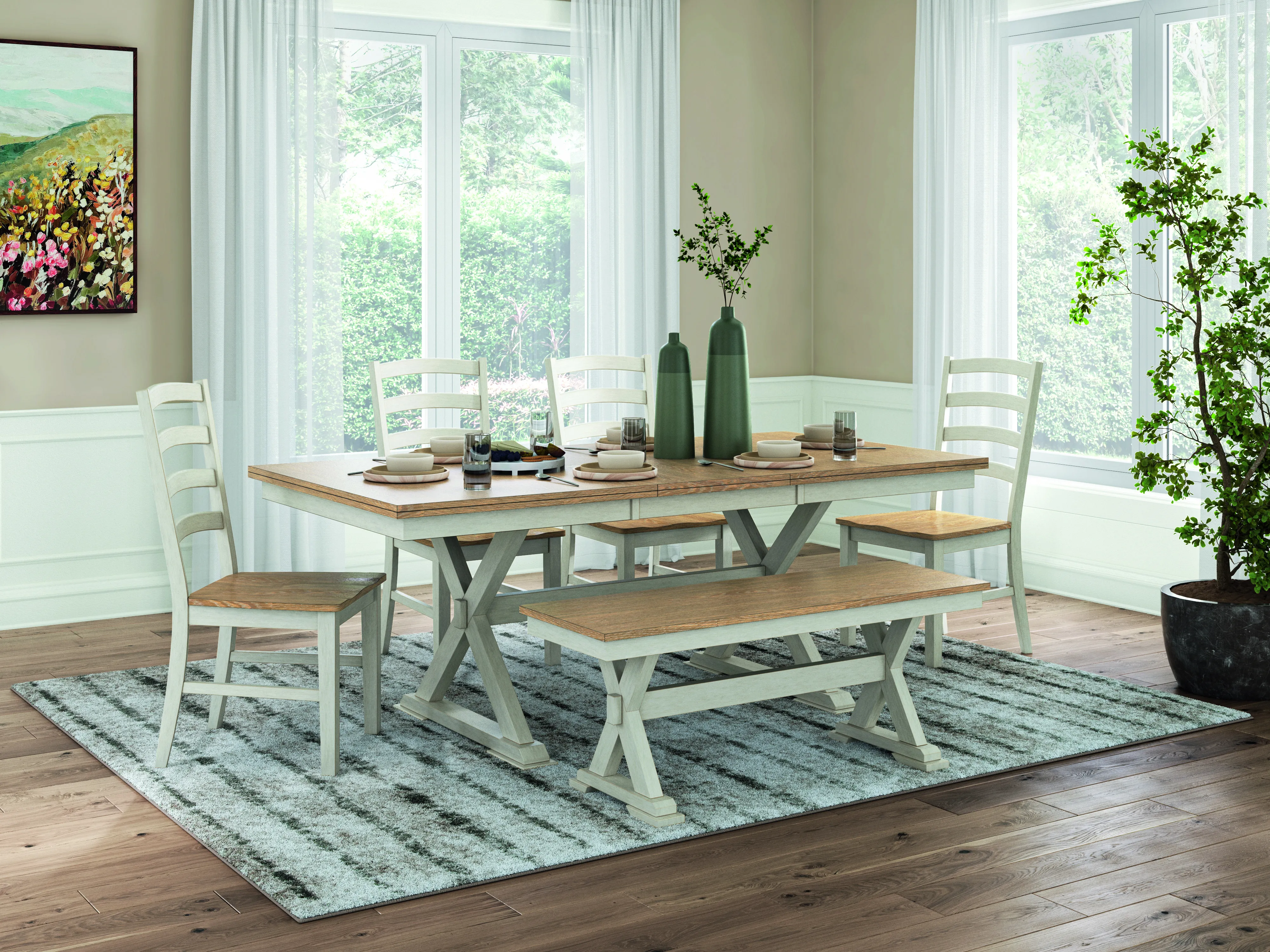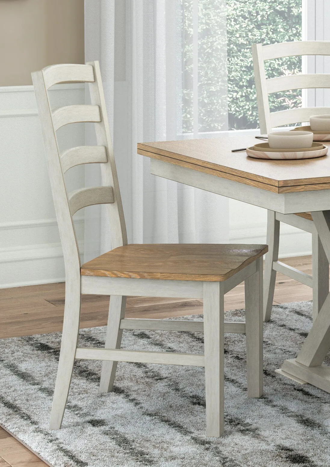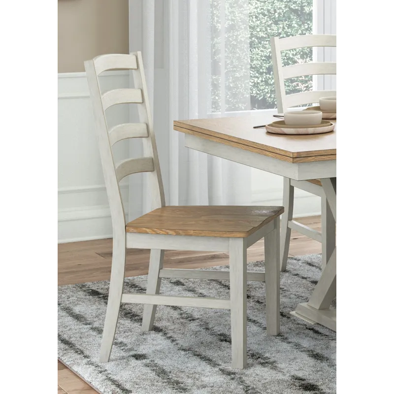 Busy breakfasts and family dinners get a dose of modern farmhouse flair with this dining chair. Its two-tone finish contrasts a light butcher block hue with an antiqued white frame for an utterly charming effect. A contoured seat elevates the comfort level. Complete with a ladderback design, it's an effortless seating solution with chic character.