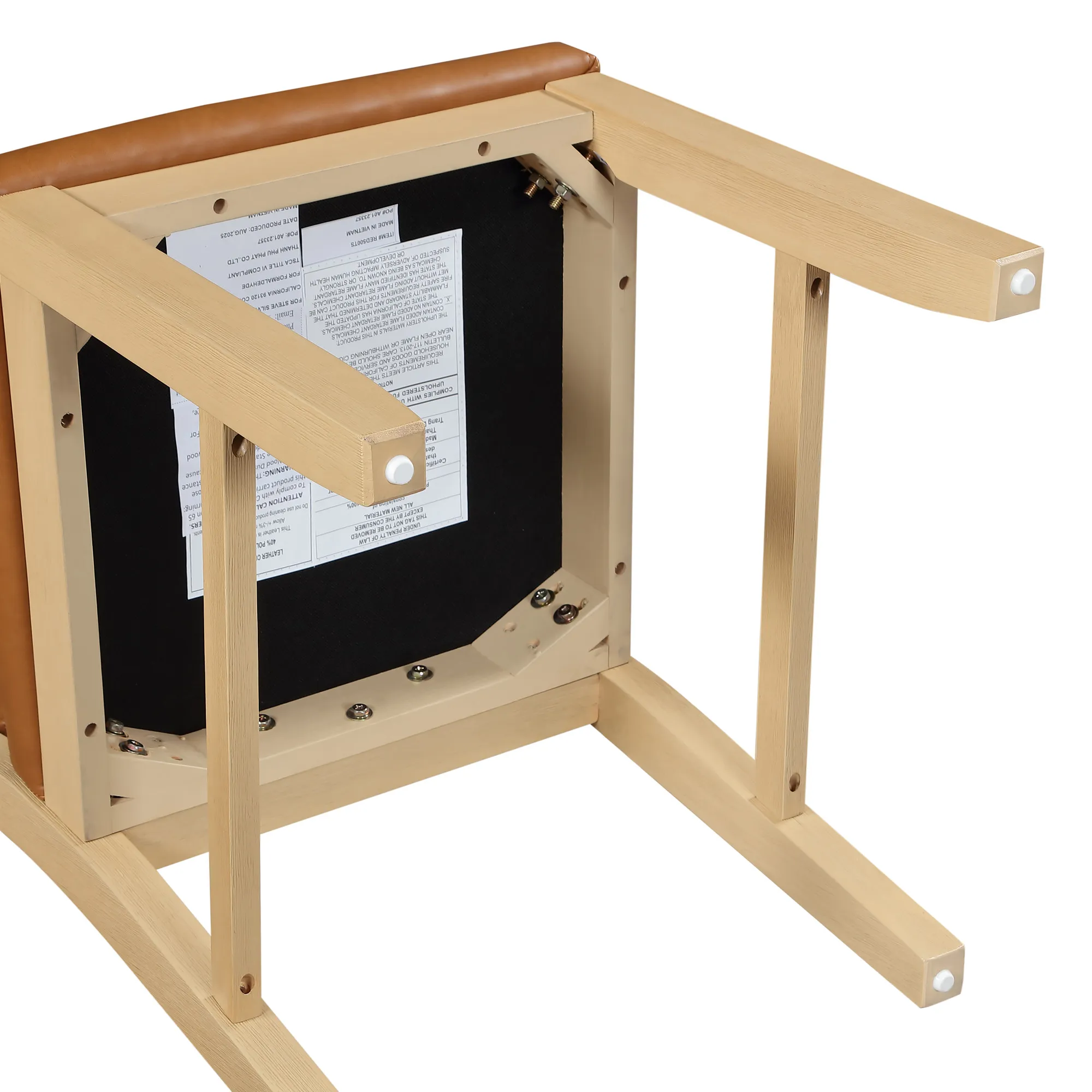 - Experience affordable, leather-like luxury with the camel vegan leather chair from 60% polyurethane/40% polyester that’s easy to care for, comfortable, and adds a warm, rustic leather-like touch to your dining space.
