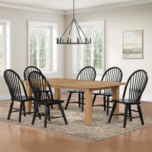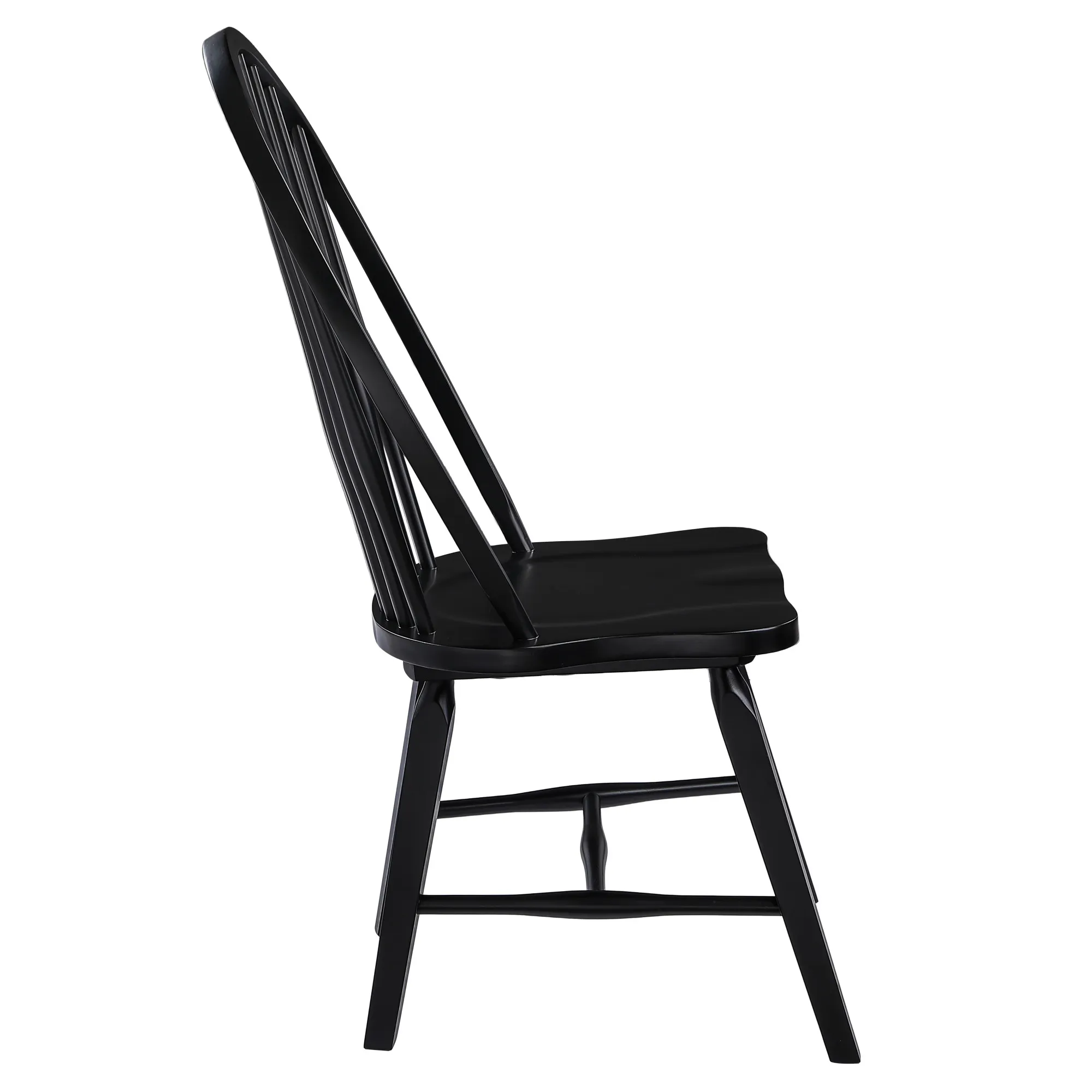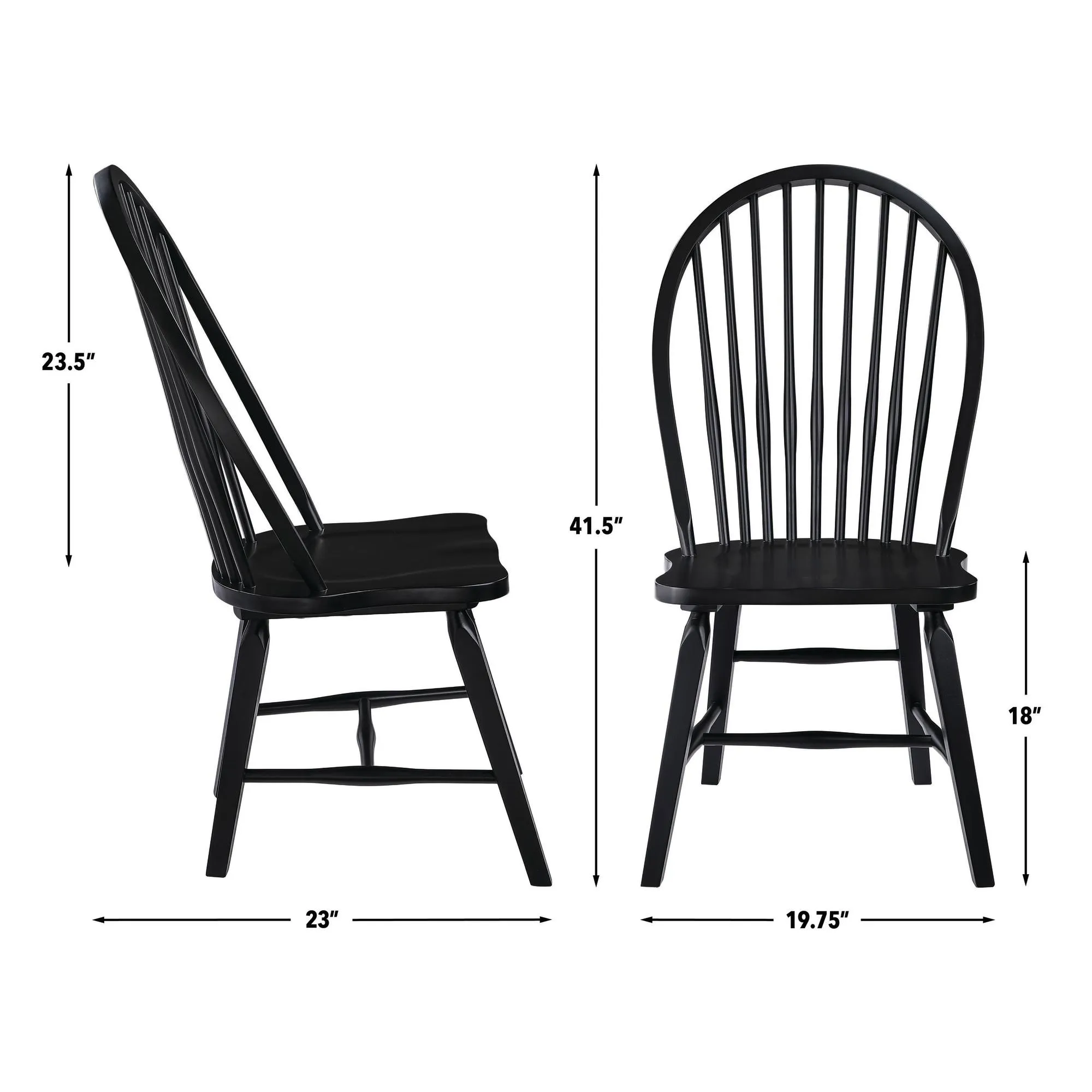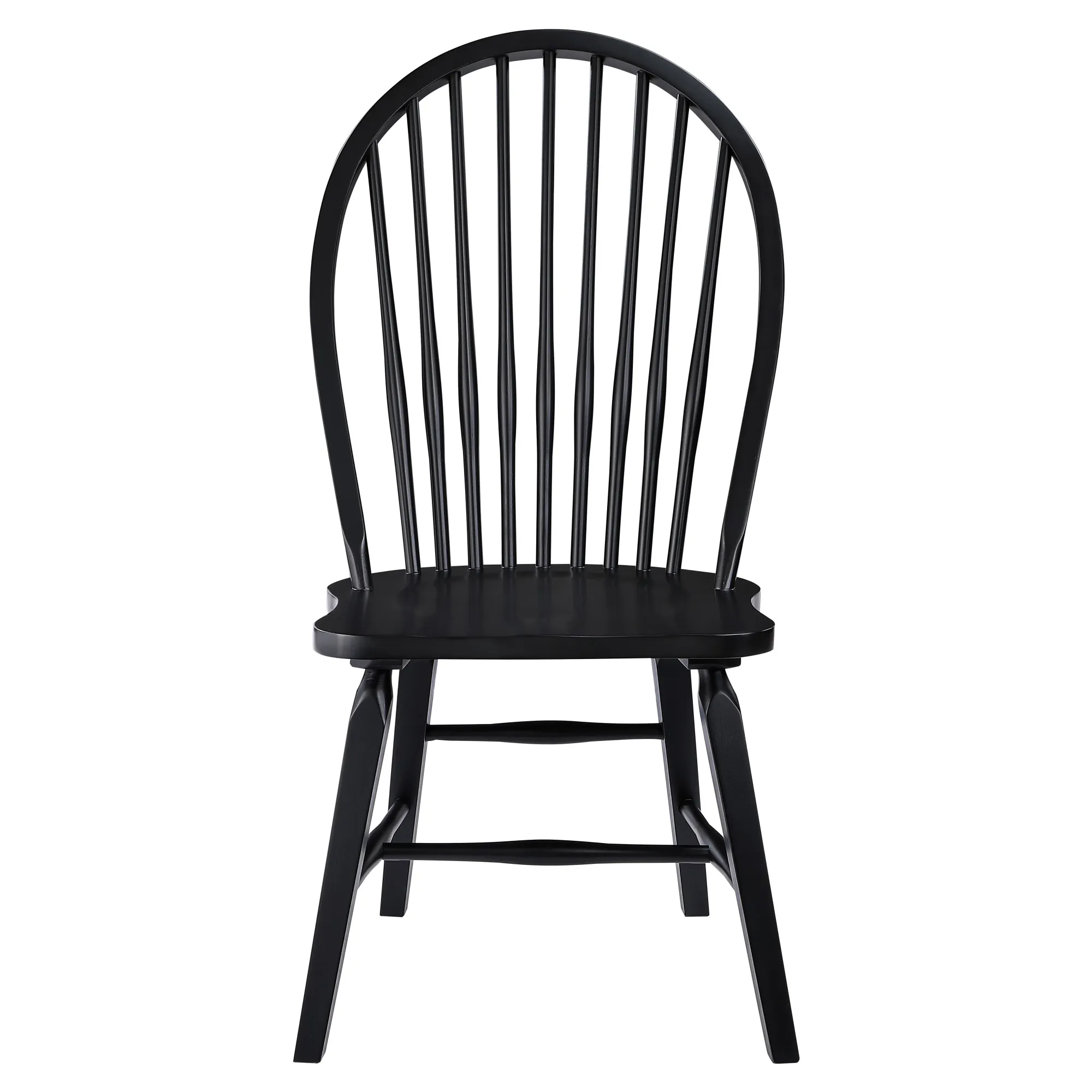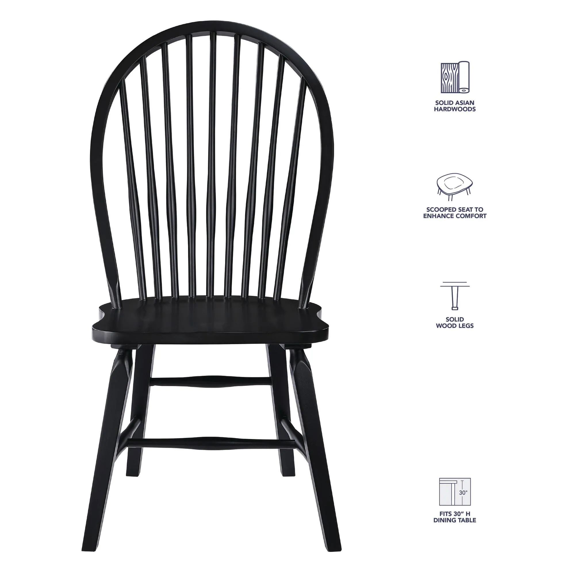 Timeless design meets everyday comfort in the Sommerset Solid Wood Black Windsor Chair. Crafted from solid Asian hardwoods, this modern take on a classic Windsor features a gently scooped seat for enhanced comfort during everyday dining and gathering. Finished in a versatile black, the Sommerset chair balances traditional craftsmanship with contemporary appeal. Its clean lines and spindle back adapt easily to farmhouse or modern spaces, making it a durable, stylish addition to dining rooms, kitchens, or casual seating areas.