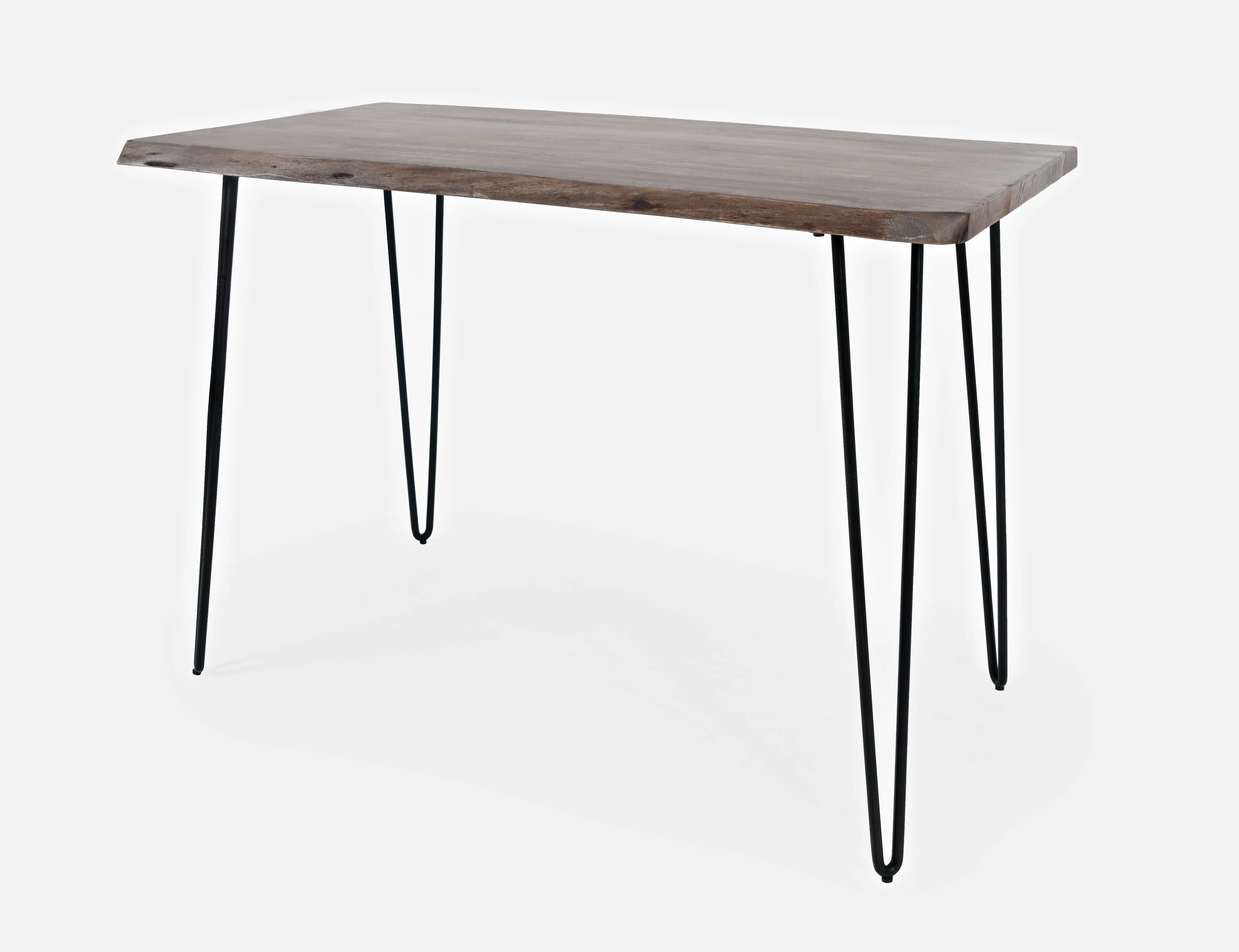 Celebrate the perfect balance of raw beauty and modern design with the Nature’s Edge 5-Piece Counter Height Table Set. Crafted from solid Acacia hardwood, each tabletop and seat highlights the unique character of a live edge, making every piece truly one of a kind. Sleek iron hairpin legs add an industrial flair, creating a dining set that feels both grounded and stylish in any home setting.