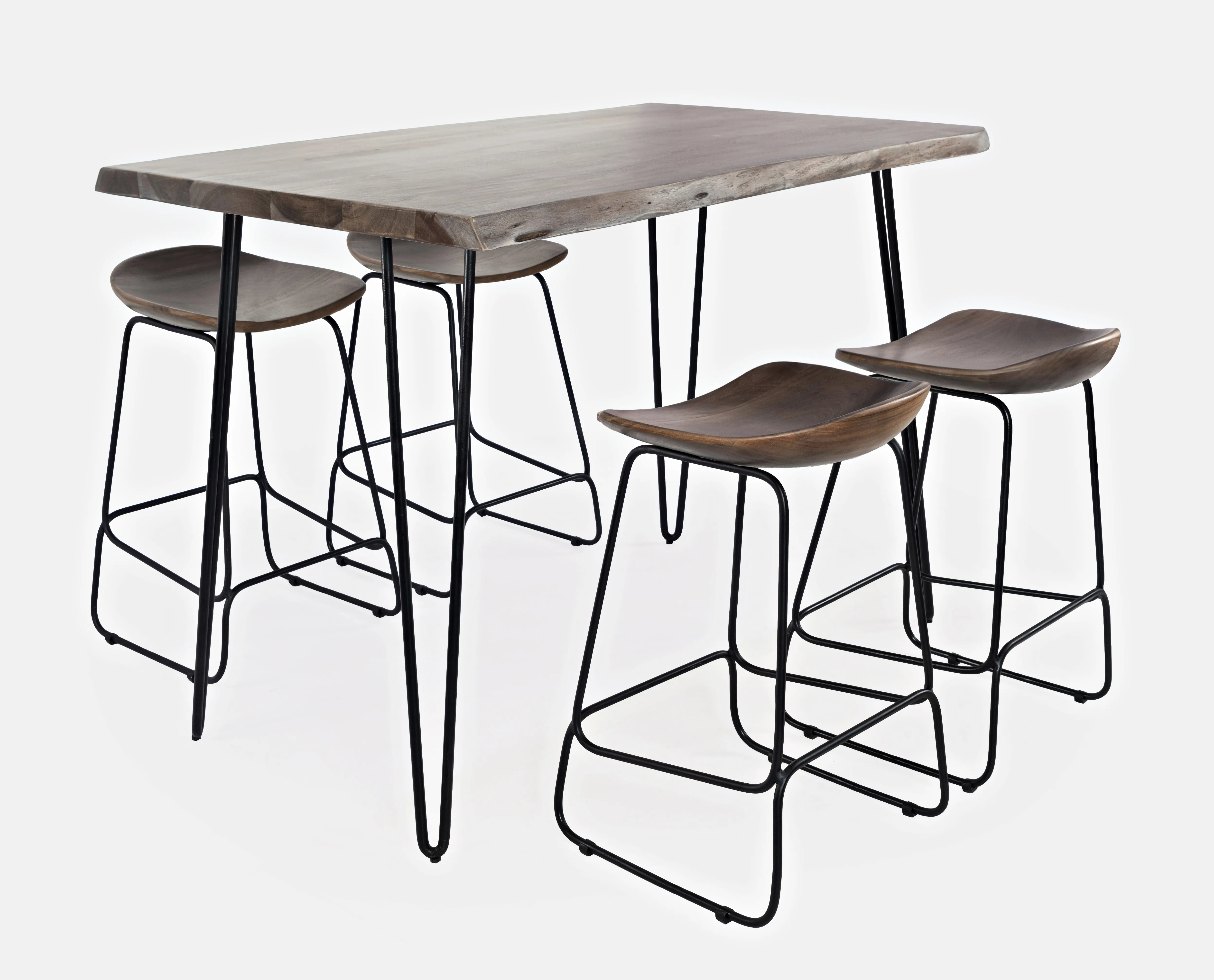 The Jofran Nature’s Edge 5-Piece Counter Height Table Set combines rustic wood grain, live-edge detail, and modern metal design for a fresh take on industrial dining style—perfect for contemporary, loft, or farmhouse-inspired interiors.