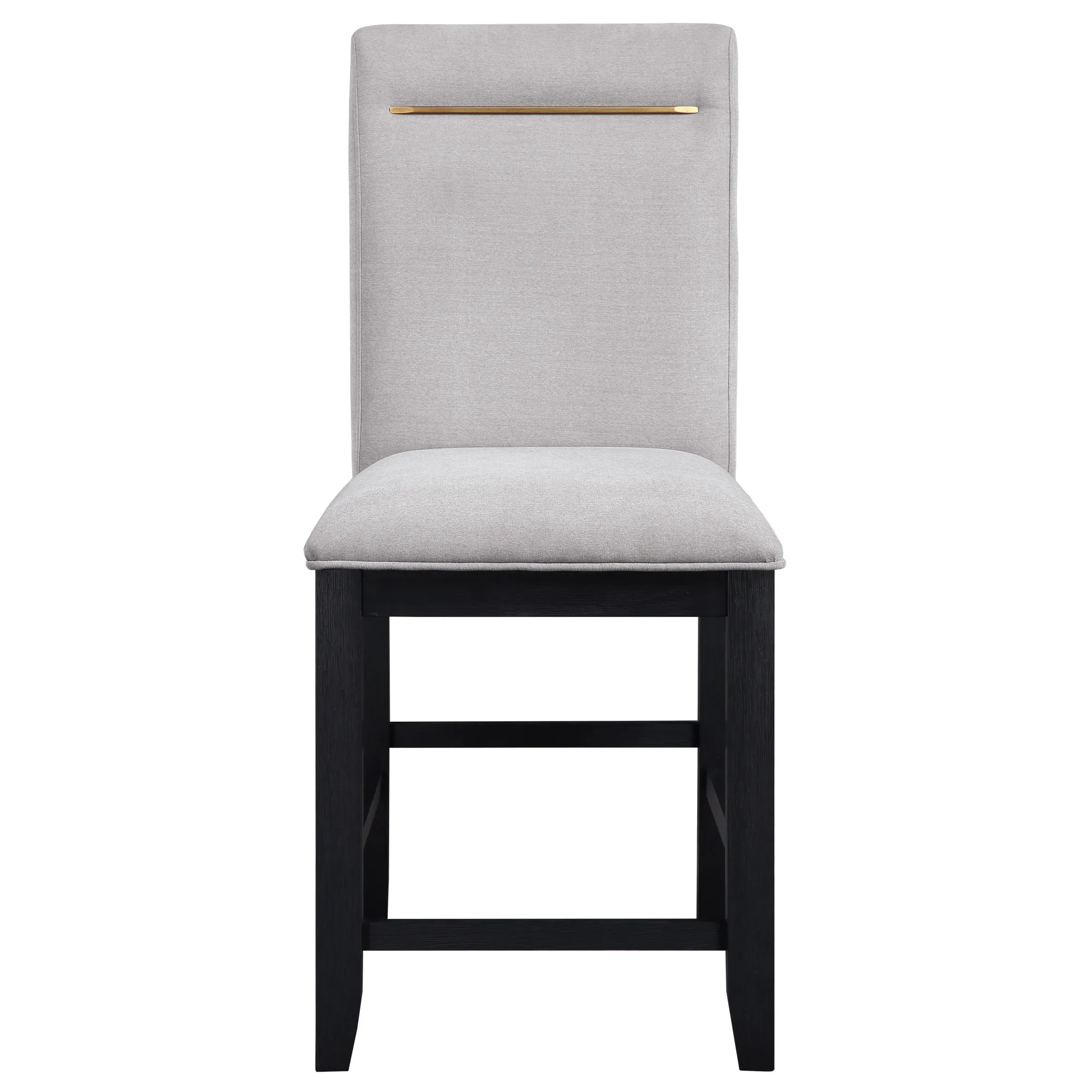 This dining set combines style and storage in one beautiful package. Crafted of ash veneers and hardwood solids in a lustrous black finish, the Counter Storage Base offers both display and storage with the clean modern lines you will appreciate. Brushed brass accents offer a great complement to the black finish and are featured on hardware and on the back of the performance fabric chairs. The Counter Height table, chairs and bench are a wonderful height for sitting and working and the seating can also be used on 36-inch height counters. Yves shows you do not have to sacrifice function for style in this Counter Height Dining ensemble!