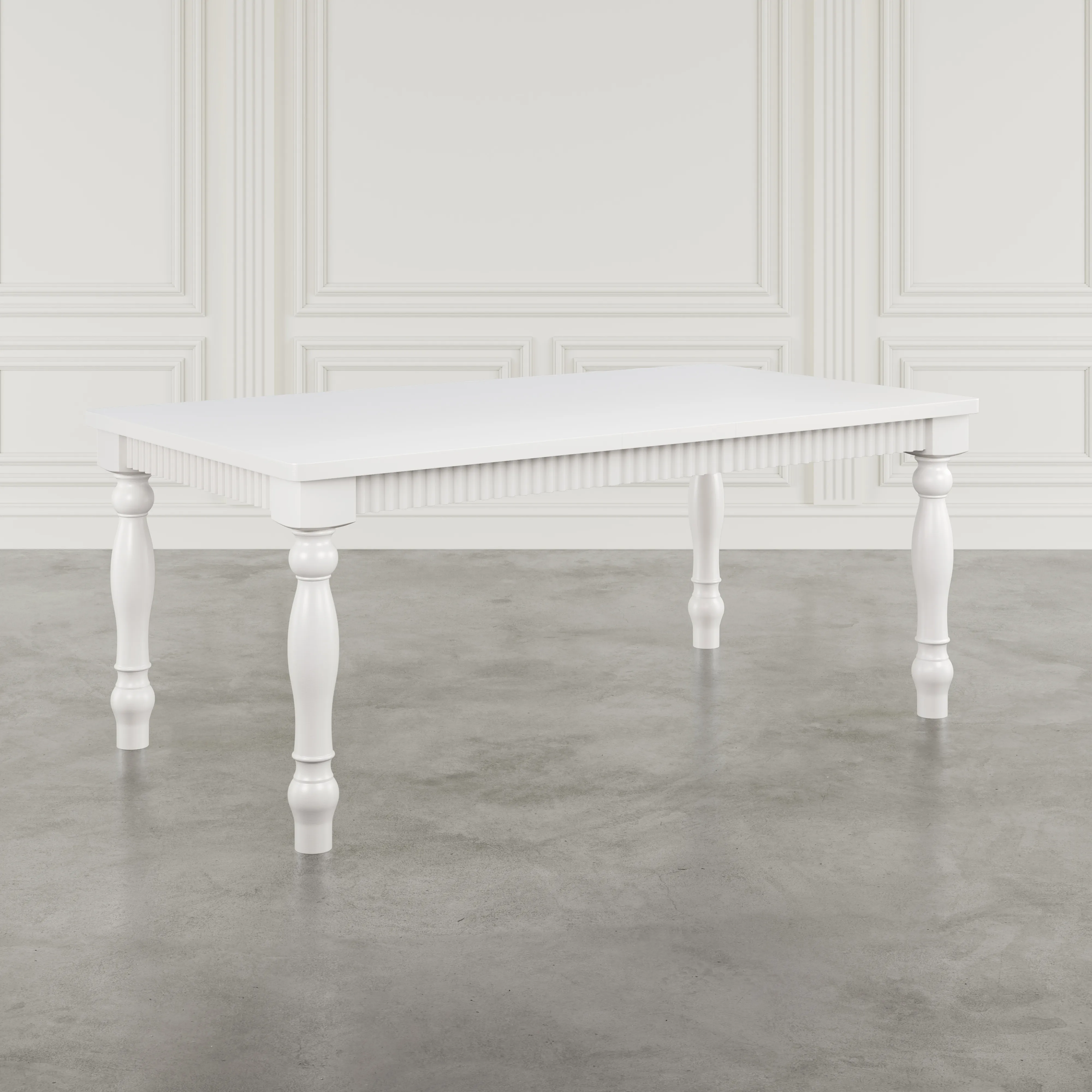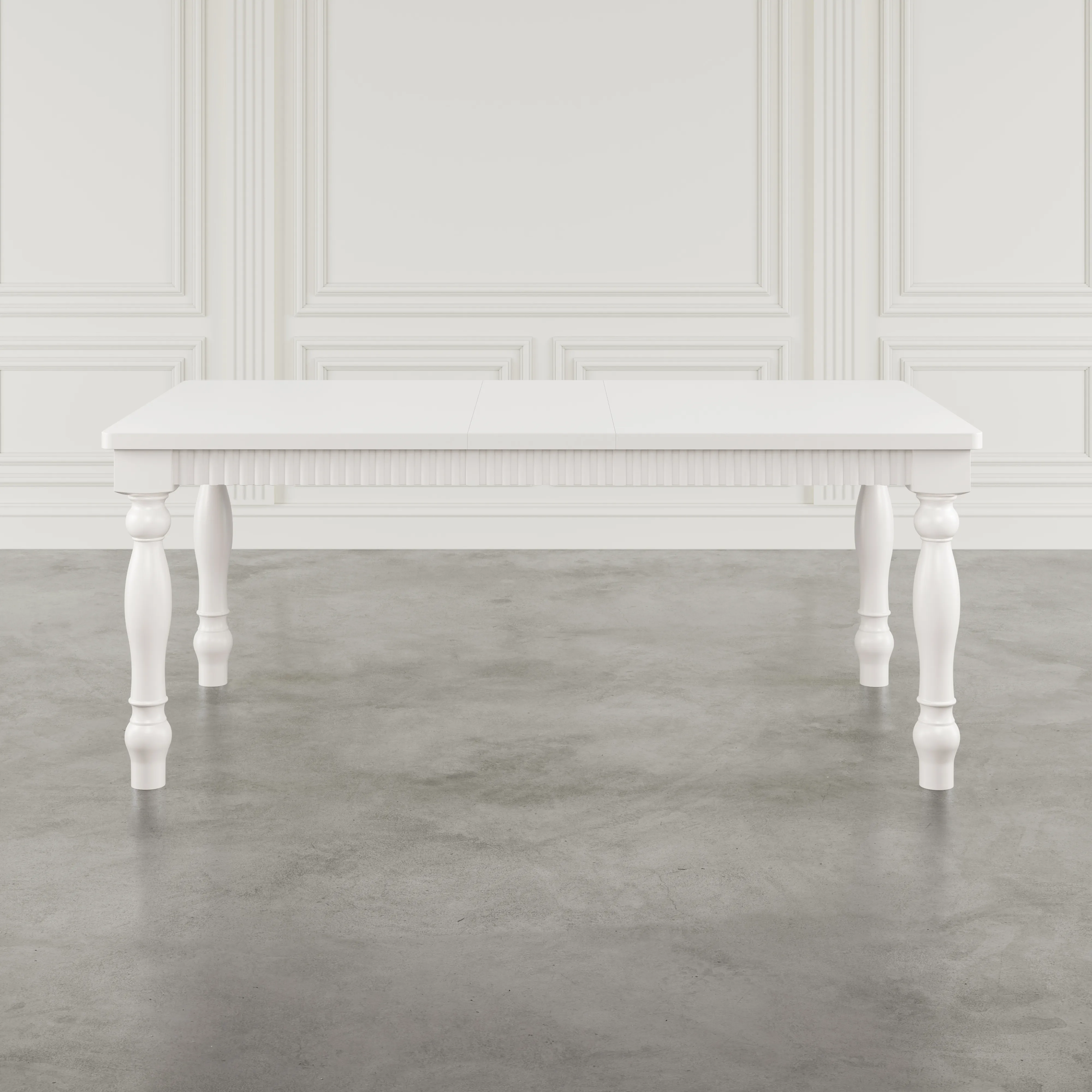 Classic design meets modern versatility in this 72 inch extension dining table. Perfect for both everyday meals and special occasions, the table measures 60 x 40 inch without the leaf and expands to 72 x 40 inch with the included 12 inch extension. Standing at 30 inch high, it offers a comfortable dining height that works well for family gatherings or entertaining friends. The rectangular top is supported by turned legs, adding traditional character, while the fluted apron brings an extra layer of crafted detail. Built from rubberwood and veneer, it balances durability with a refined look that feels at home in both casual and more formal settings. Available in either navy or white, this table can lean coastal, farmhouse, or classic depending on how it is styled. Generous in size yet welcoming in design, it is a versatile centerpiece that adapts to the way you live and gather.