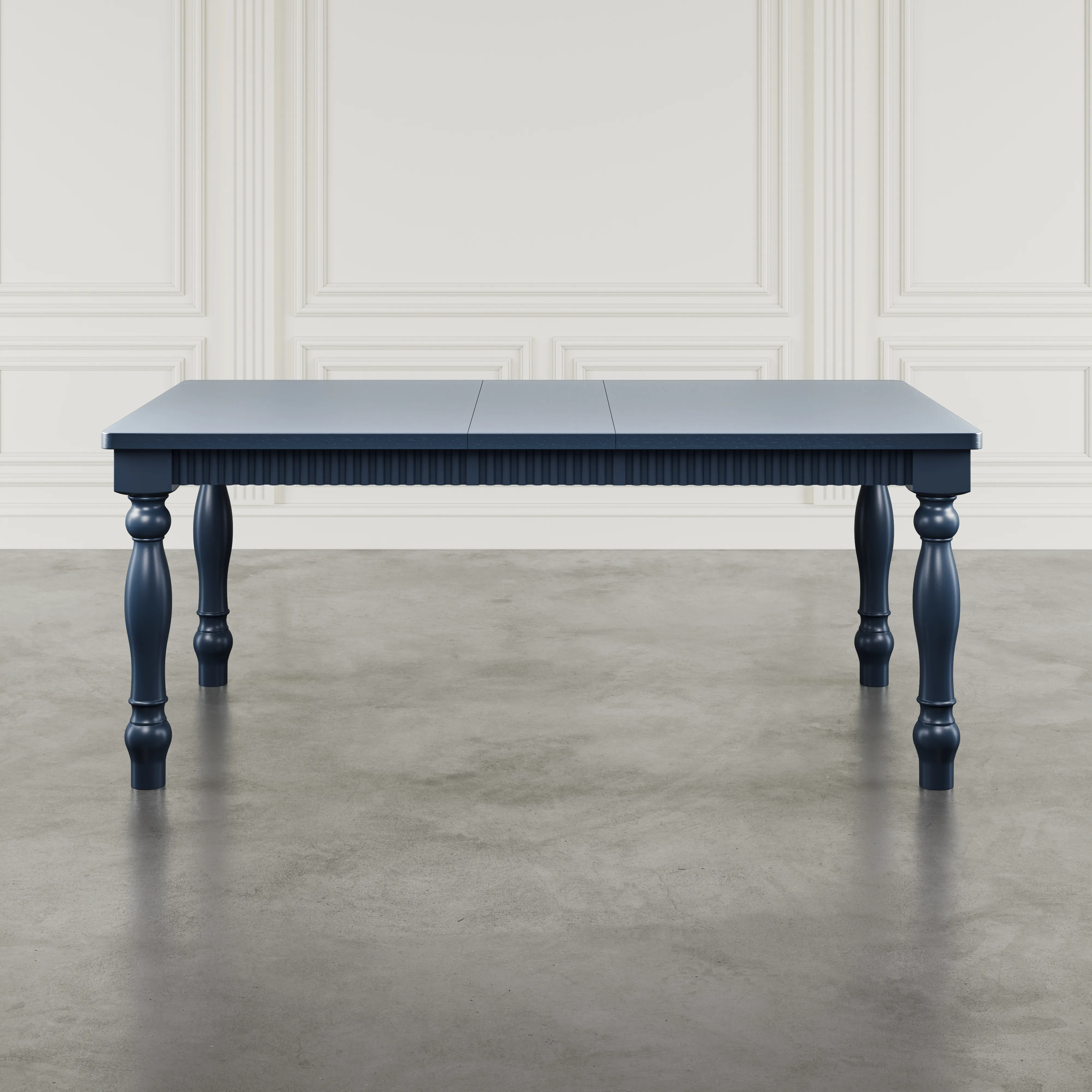 Classic design meets modern versatility in this 72 inch extension dining table. Perfect for both everyday meals and special occasions, the table measures 60 x 40 inch without the leaf and expands to 72 x 40 inch with the included 12 inch extension. Standing at 30 inch high, it offers a comfortable dining height that works well for family gatherings or entertaining friends. The rectangular top is supported by turned legs, adding traditional character, while the fluted apron brings an extra layer of crafted detail. Built from rubberwood and veneer, it balances durability with a refined look that feels at home in both casual and more formal settings. Available in either navy or white, this table can lean coastal, farmhouse, or classic depending on how it is styled. Generous in size yet welcoming in design, it is a versatile centerpiece that adapts to the way you live and gather.