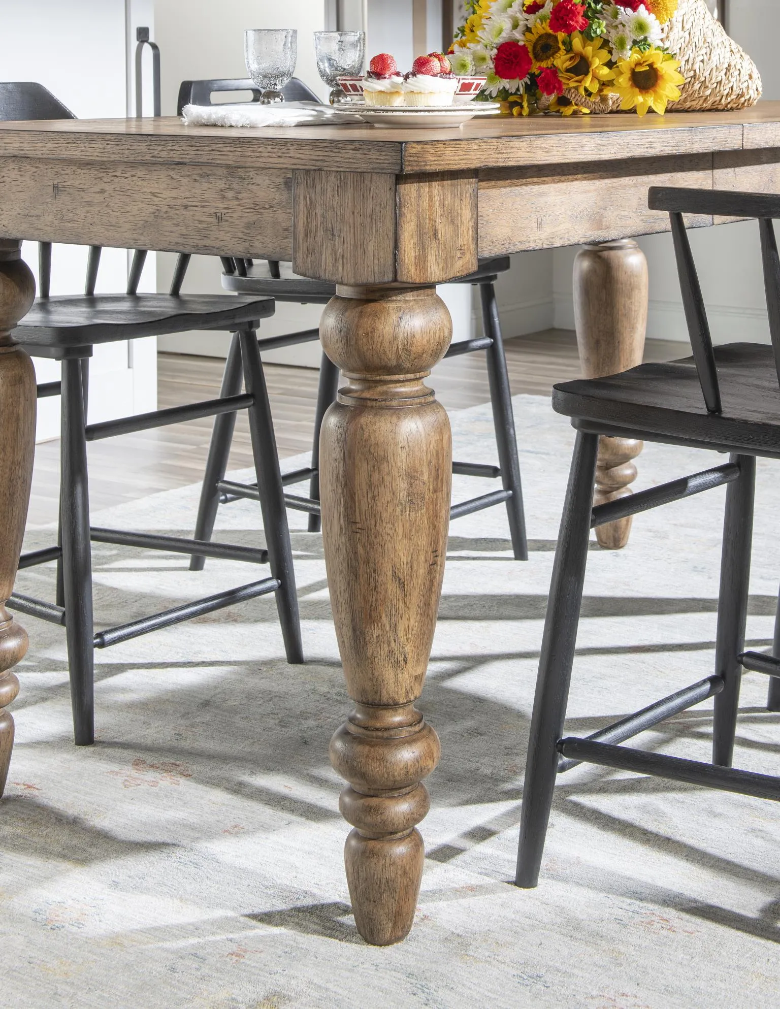 • Turned chimney-style legs highlight vintage craftsmanship and timeless appeal