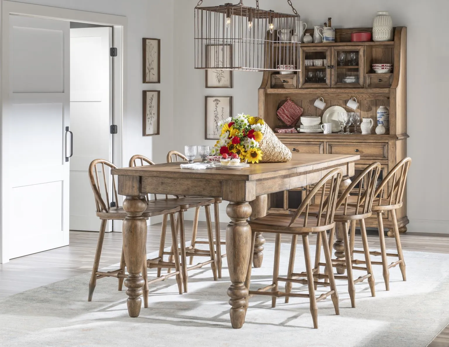 Crafted from select hardwoods and oak veneers, this beautifully built table reflects the authenticity and durability that define the Country Living Vintage Market Collection. The combination of its refined proportions, classic silhouette, and heirloom-inspired finishes makes it a versatile centerpiece for kitchens, breakfast nooks, or dining rooms. Whether styled with matching Windsor Counter Height Chairs or a mix of seating for a more curated look, it embodies the collection’s warm + cozy + family lifestyle.