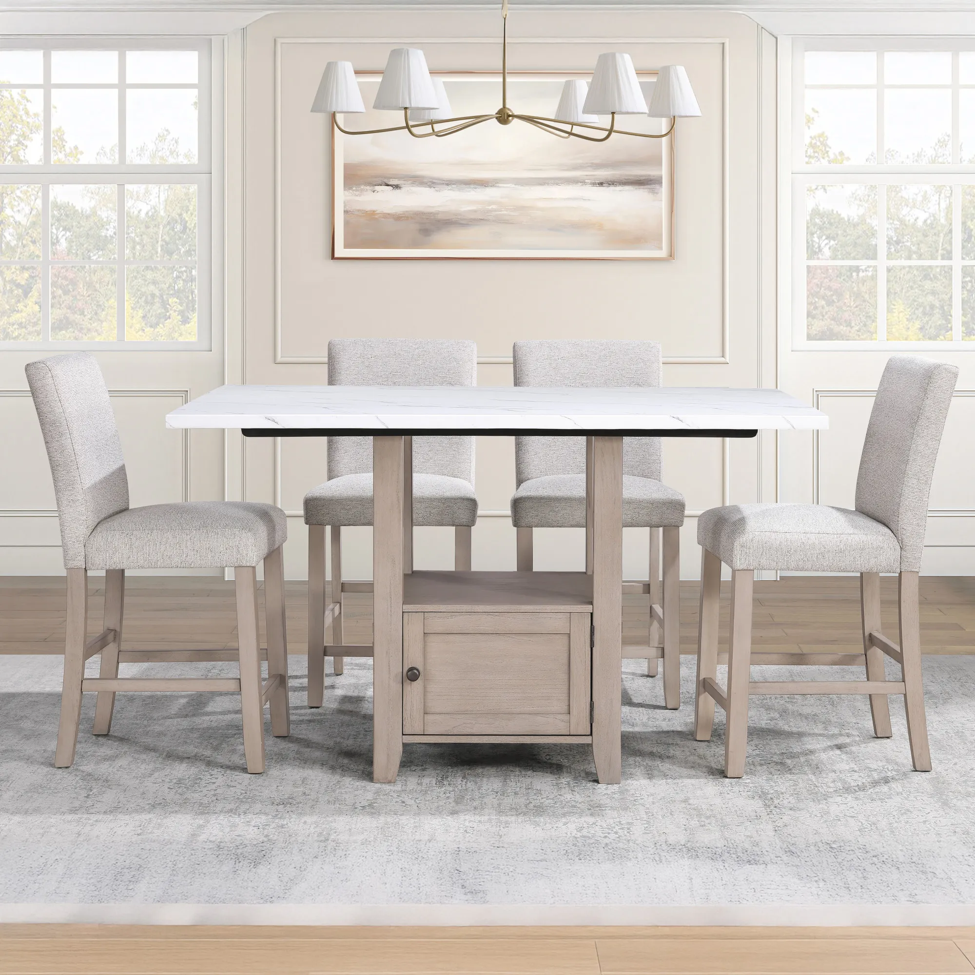 The Steve Silver Taylor Faux Marble Top Counter Height Table offers the refined appearance of marble with the durability and practicality needed for everyday living. Featuring a faux marble surface, kiln-dried wood construction, built-in storage, and a warm hand-stained tan finish, this 60-inch counter-height table comfortably seats six and adapts effortlessly to dining, entertaining, or workspace needs—making it a versatile centerpiece for today’s multifunctional homes.
