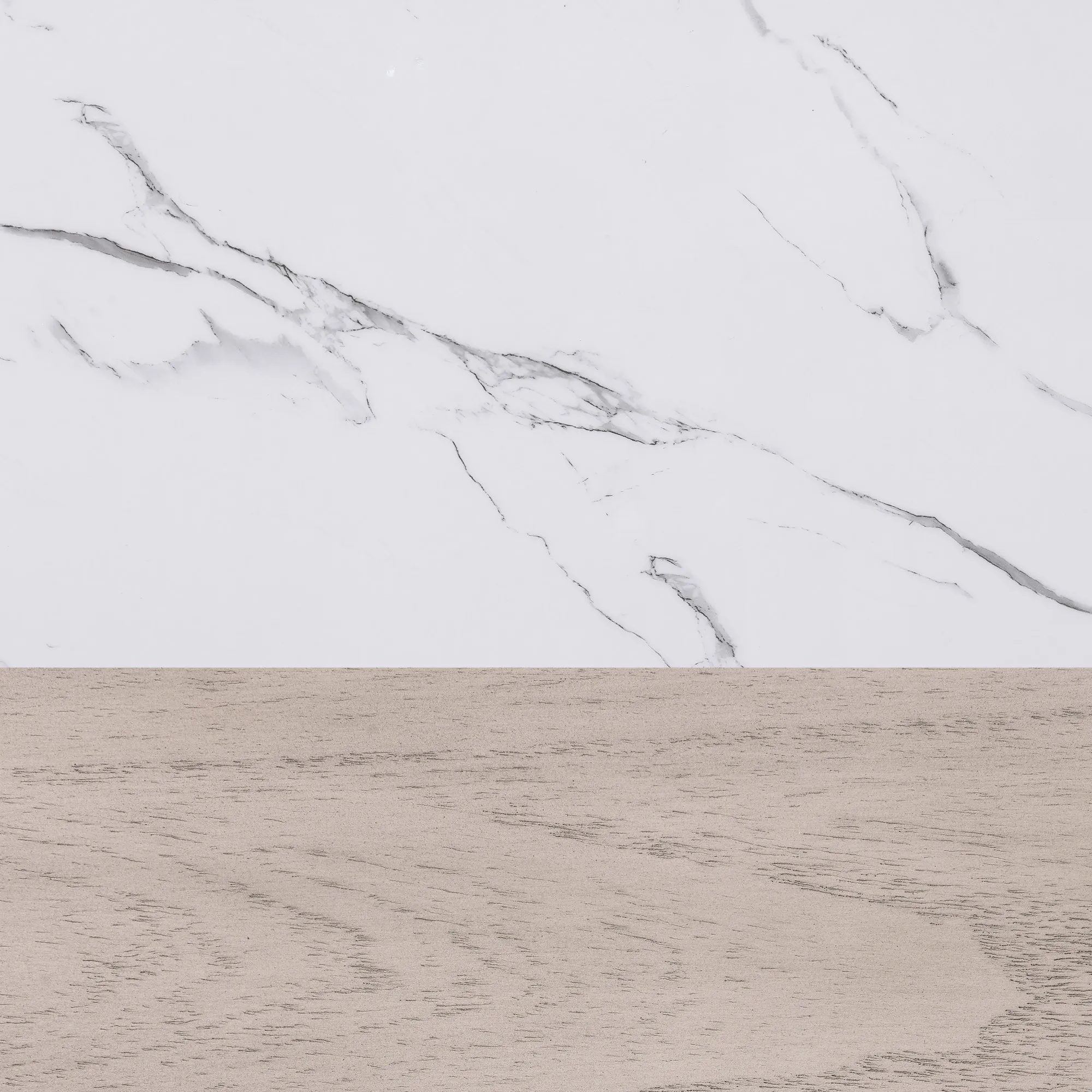 Color/Finish: Natural multi-step tan wood finish with faux marble top