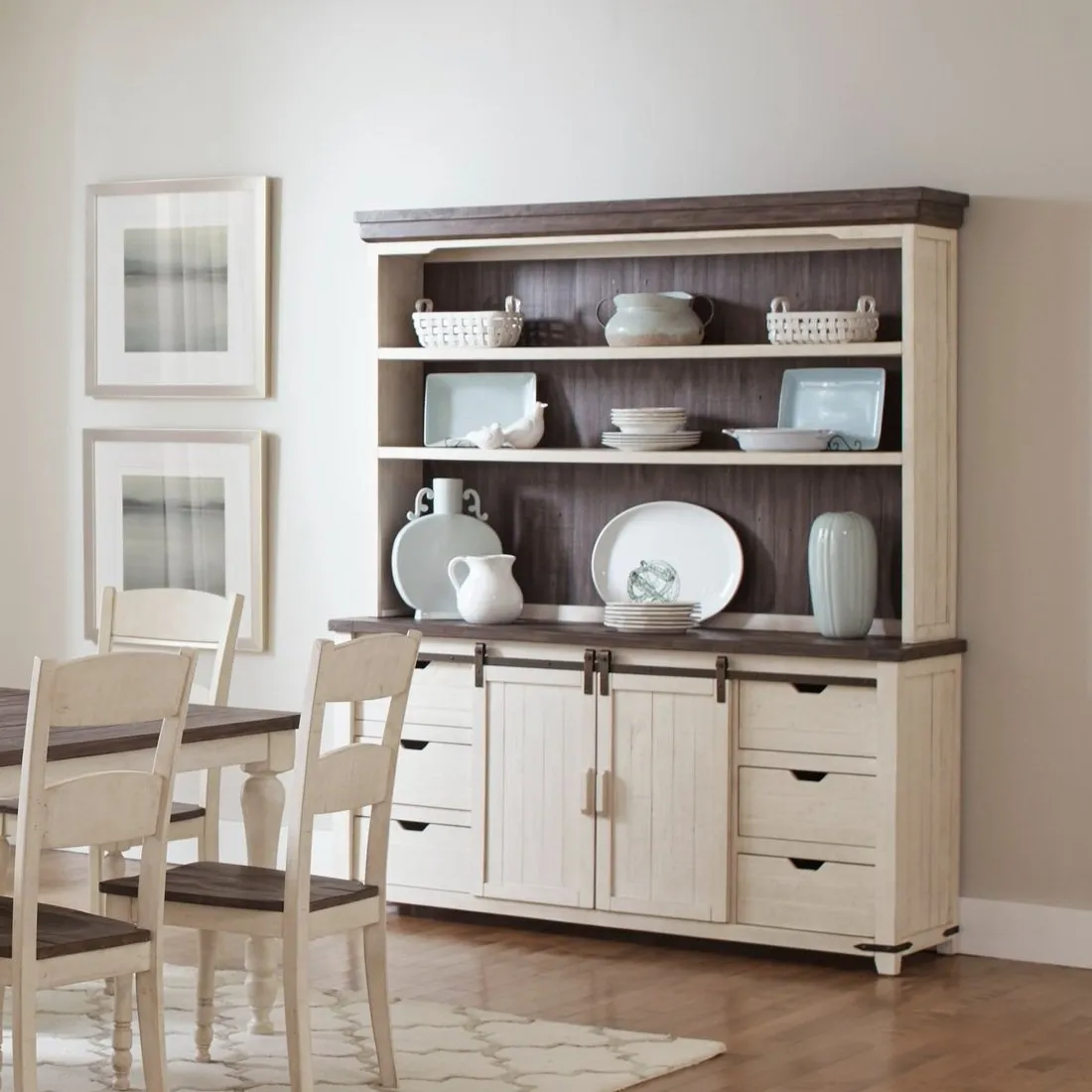 The Madison County Server + Hutch - Vintage White by Jofran may be available at Old Brick Furniture & Mattress Co. in the