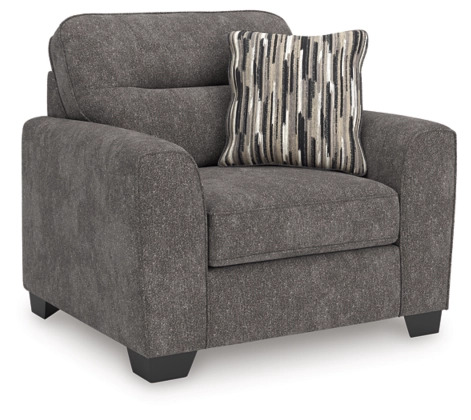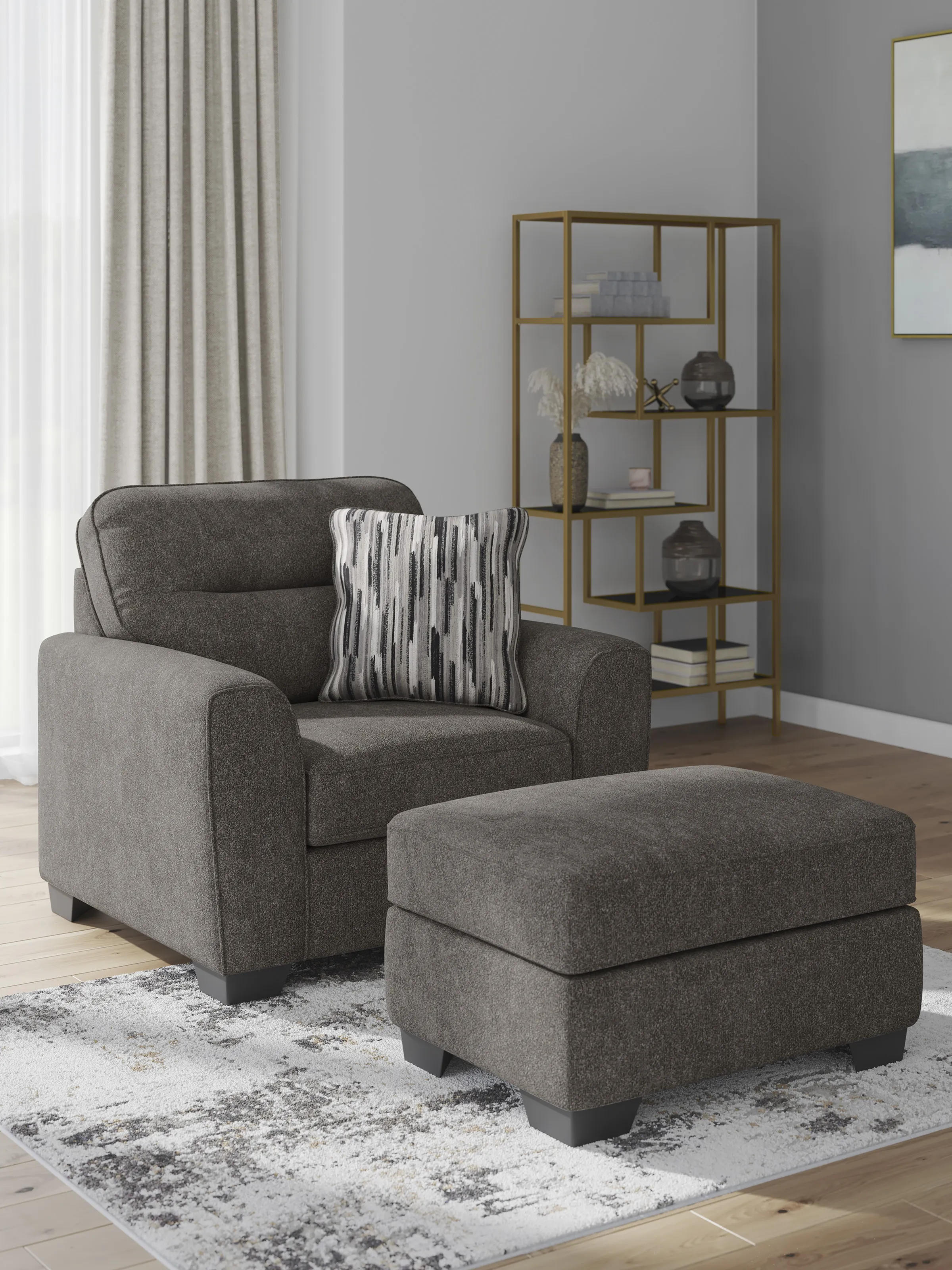 Strike a balance between the indulgent comfort you crave and the contemporary aesthetic you long for. The fabulously soft, graphite-colored upholstery of this oversized chair takes neutrals to new heights. Plus its large scale gives you plenty of room to spread out and relax solo or with your bestie. A geometric-patterned accent pillow perfects the richly on-trend aesthetic.