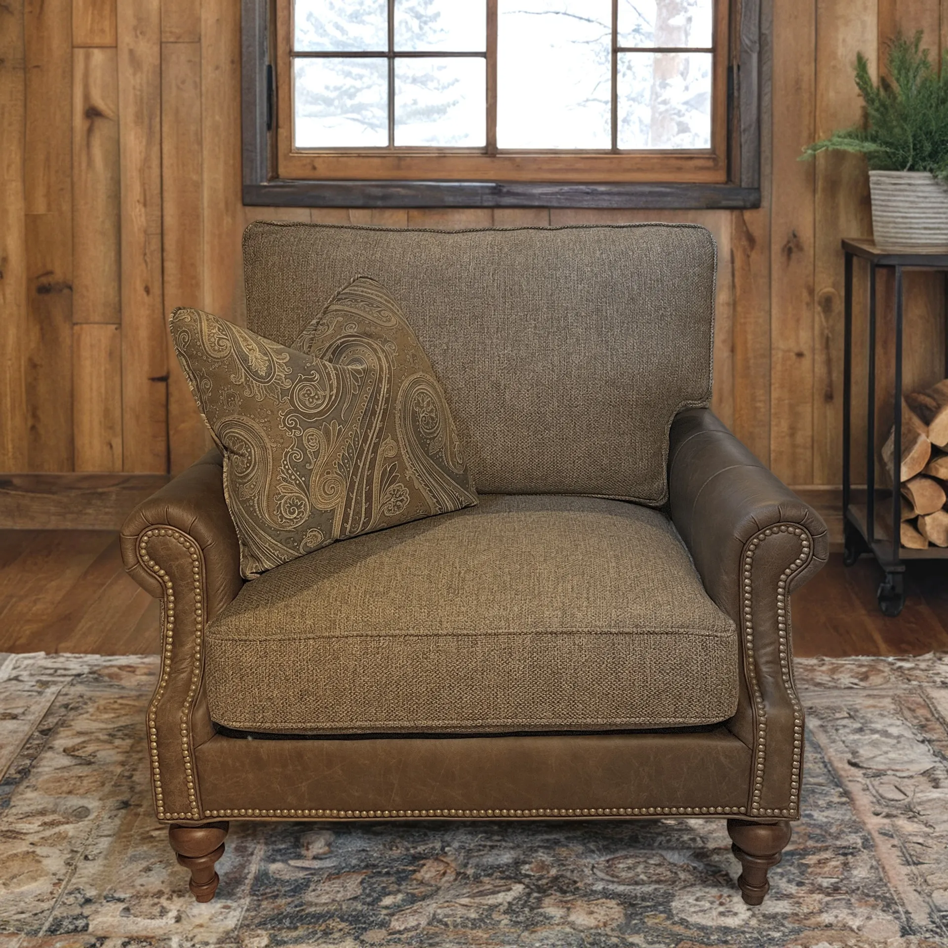 Introducing the oversized armchair companion to the elegant Craftmaster Eastwood Bahama Custom Blends sofa. Designed in the same aesthetic—transitional to traditional styling—it features soft rolled arms, a rolled-back silhouette, and refined tapered legs. This chair boasts an expansive seating area with plush cushions made from Craftmaster's signature Blend Down coil seating and Lux‑Down toss pillow accents—perfect for those who value comfort without skimping on style.Â
