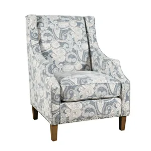 Introducing the Westbrook Accent Chair, a harmonious blend of timeless style and modern design. This exceptional chair exudes transitional charm with its distinctive wingback silhouette. Its graceful paisley pattern upholstery adds an air of sophistication to any room while the meticulous nailhead trim accents its contours with finesse.