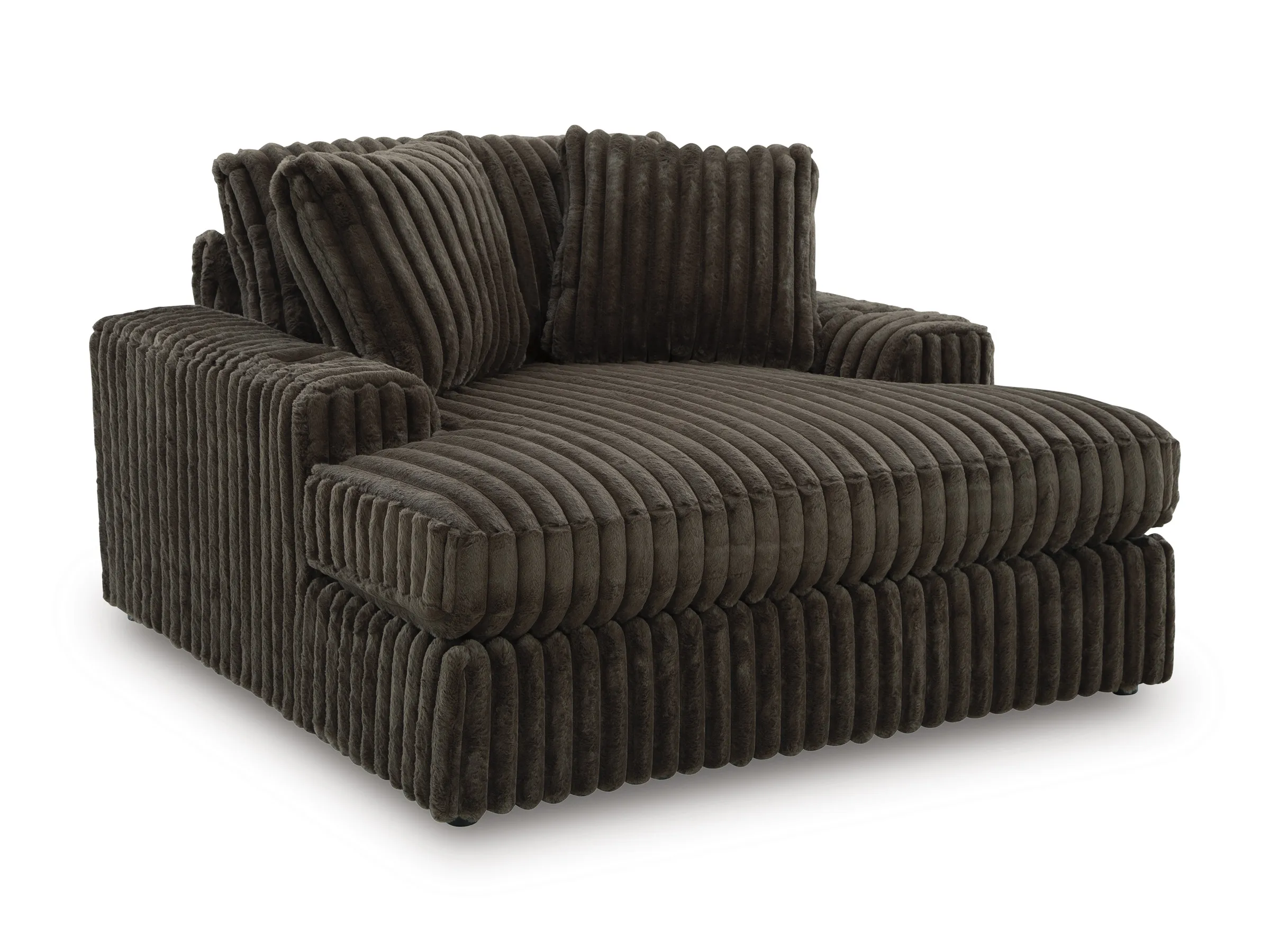 This oversized chaise takes comfortable to a new level with its luxuriously soft jumbo corduroy. Its teddy bear soft fabric invites you and your family to relax and unwind after a long day. Plus, the generously sized cushions means everyone gets a spot.