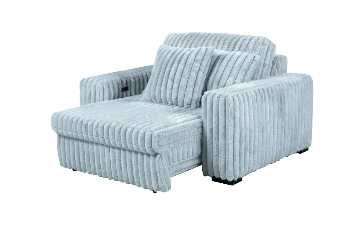 The Presley Fog Power Sliding Chaise brings personalized comfort and modern style to your living space. Upholstered in the same soft, versatile fog-toned fabric as the matching Presley sectional, this chaise offers the perfect spot to stretch out and relax. With its smooth power-sliding motion, you can effortlessly adjust your lounging position, whether you’re reading, watching TV, or taking a quick nap. Designed with plush cushioning and a durable frame, it combines luxury and practicality for everyday use.