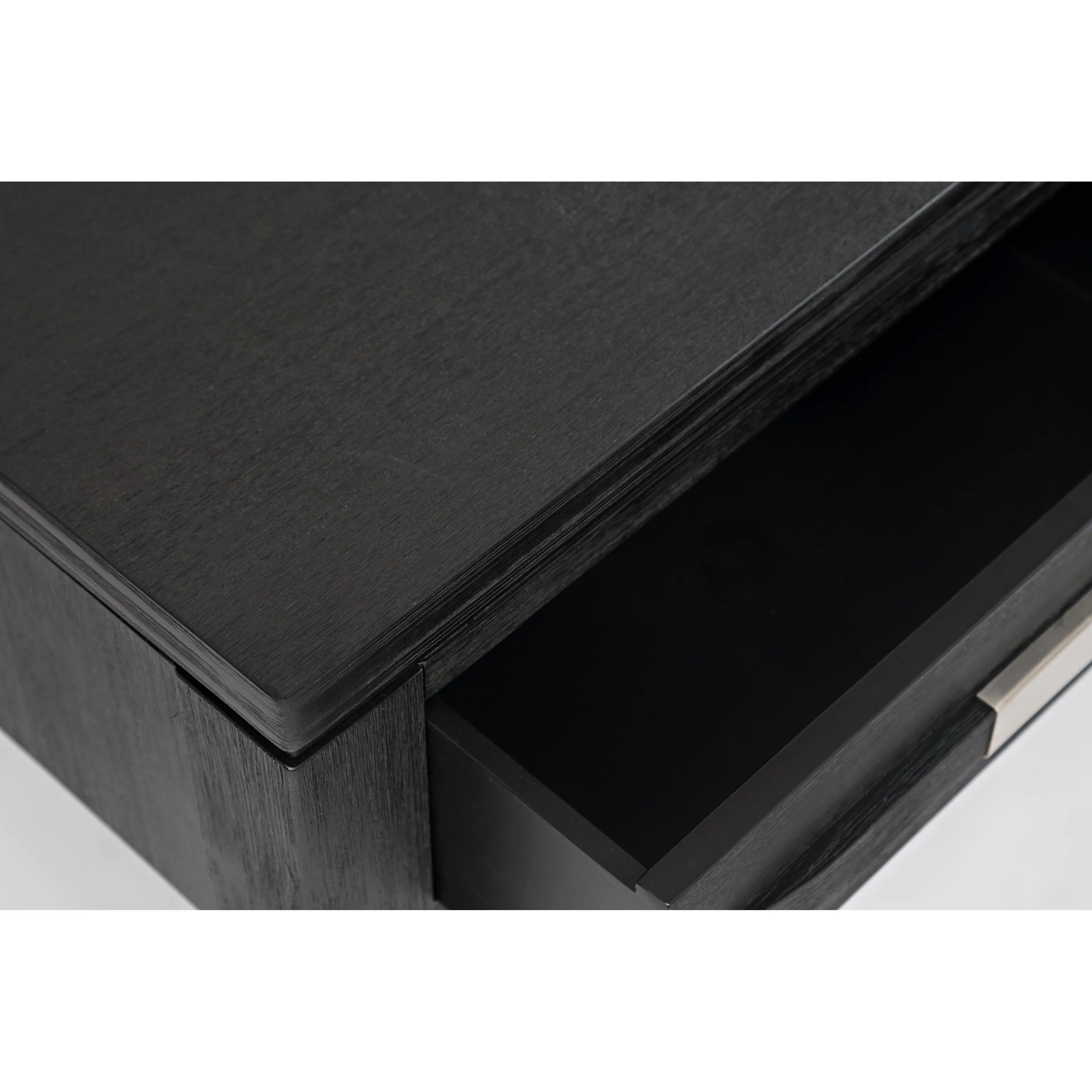 This collection seamlessly integrates living room accents into a clean, modern design made of Acacia and veneer. With bold silver hardware and the perfect balance of open and closed storage, this group brings a whole new dimension to your living space. Collection includes two cocktail, end, sofa and power chairside tables, as well as media storage solutions. Castered. Drawers can be accessed from both sides of the table.