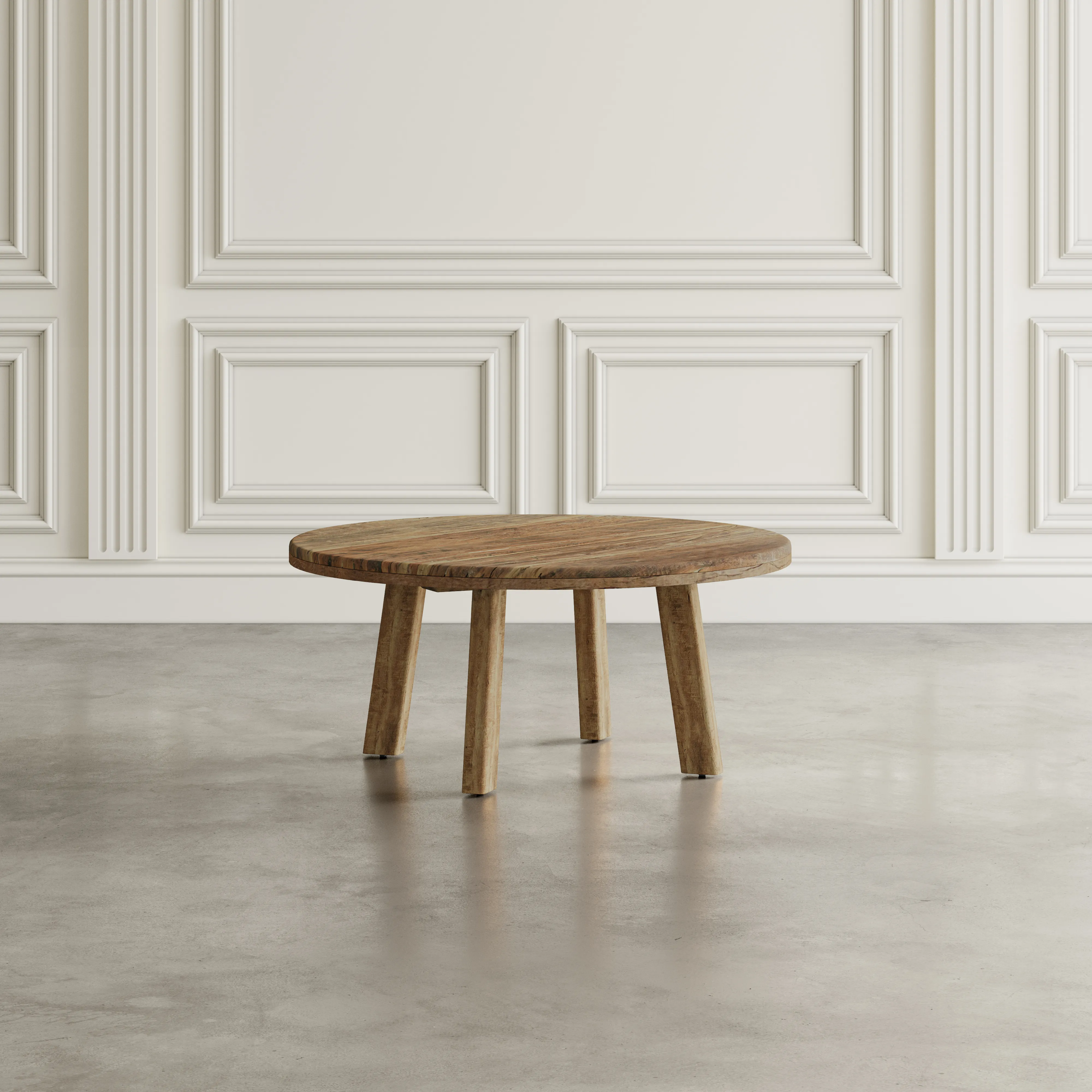 Introducing our Reclamation Solid Wood Round Coffee Table - a captivating blend of history and artistry. Handcrafted from robust reclaimed timber, its 36-inch diameter exudes a sense of intimacy and style. The table's rustic and distressed appeal, a result of its reclaimed origin, narrates a tale of time and endurance. Bathed in a natural brown hue, the unfinished wood showcases raw beauty in its purest form. Infuse your living space with a piece that merges sustainable craftsmanship with vintage allure, offering both a functional surface and a conversation-starter. Elevate your interior with a coffee table that's a testament to timeless elegance.