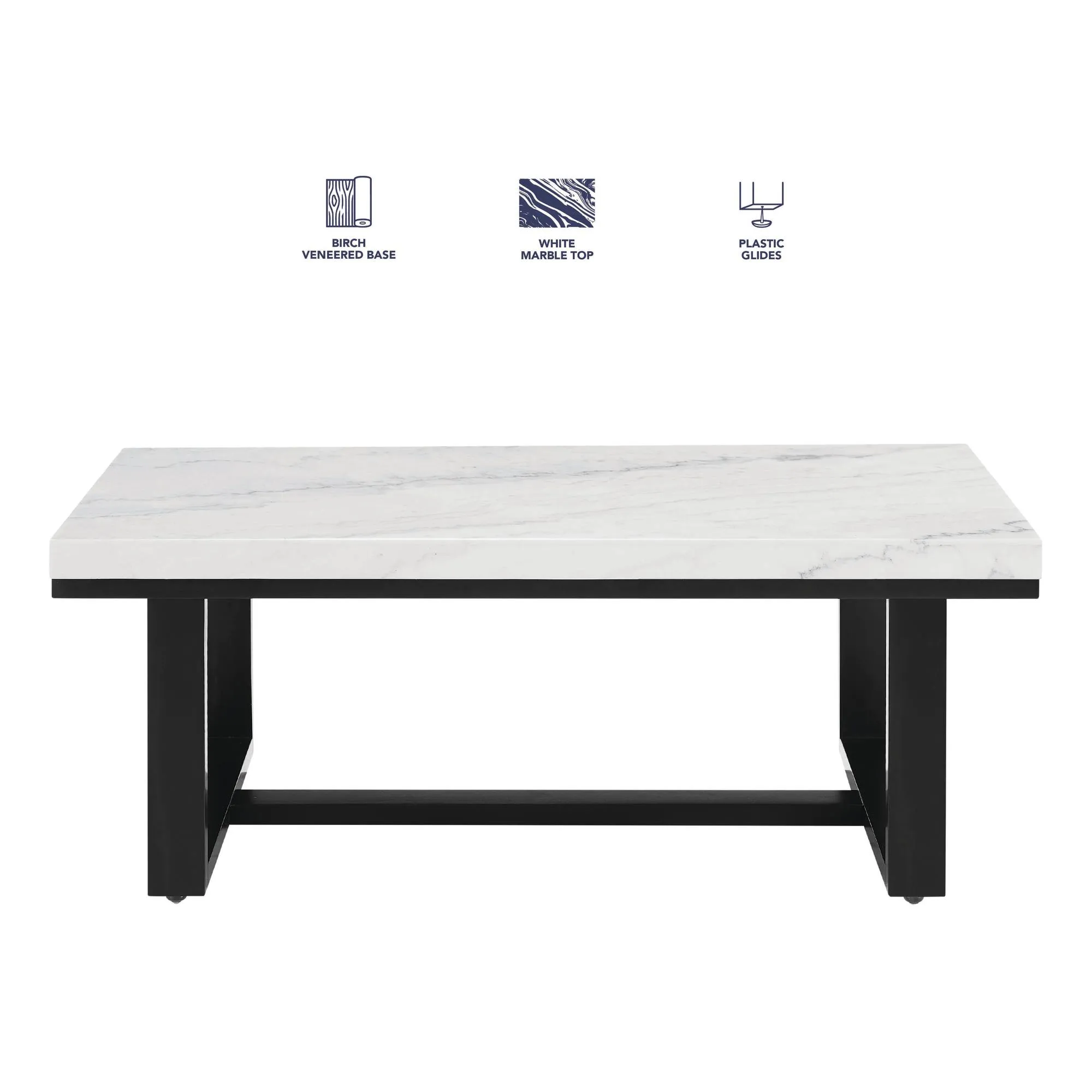Lucca represents the best of transitional design in a marble occasional collection from Steve Silver Company, the leader in living room tables. The table features a sled base in a lustrous deep espresso finish with a fashionable white marble top that will bring sparkle to any room. Refresh your living room with the new fashionable and functional Lucca white marble cocktail table today!
