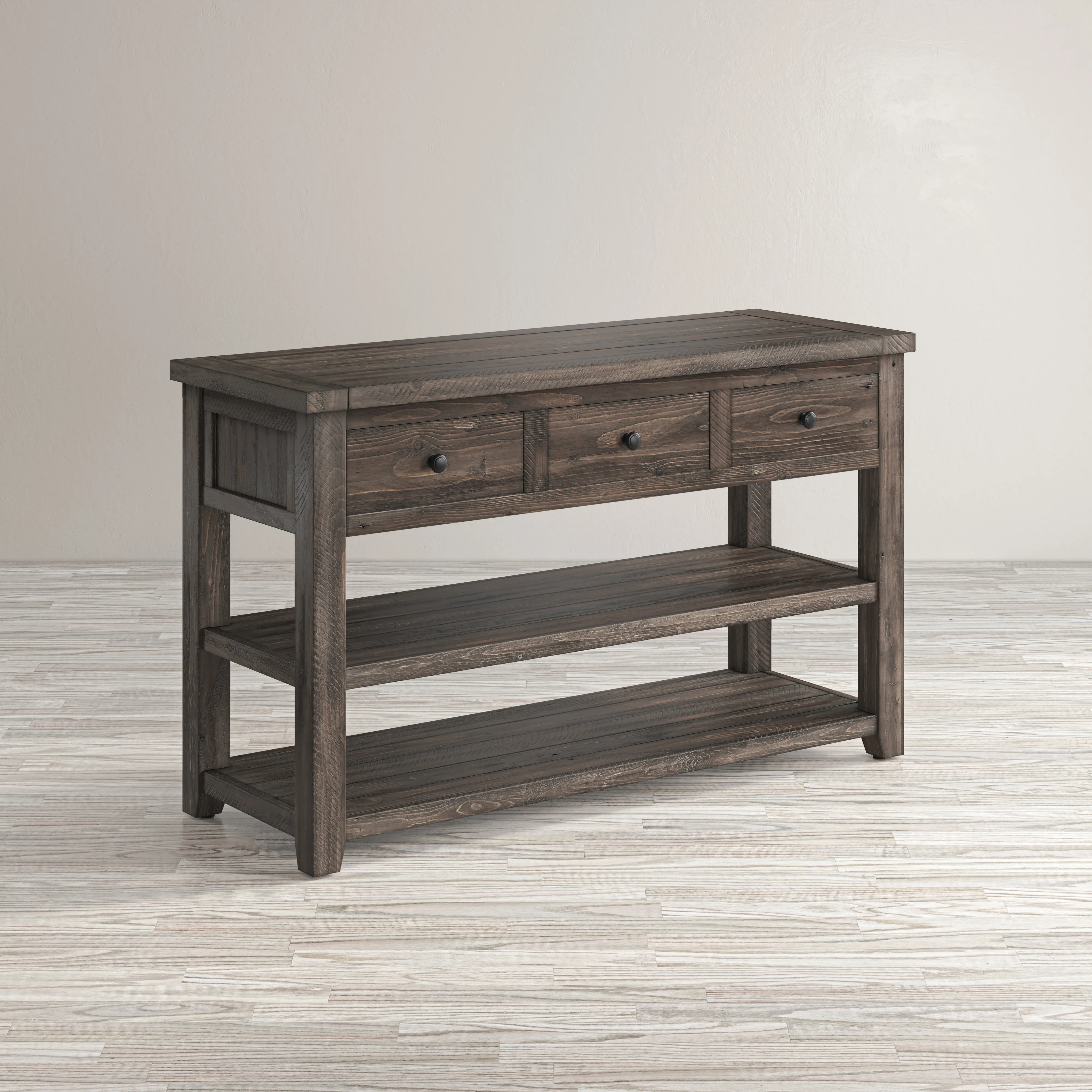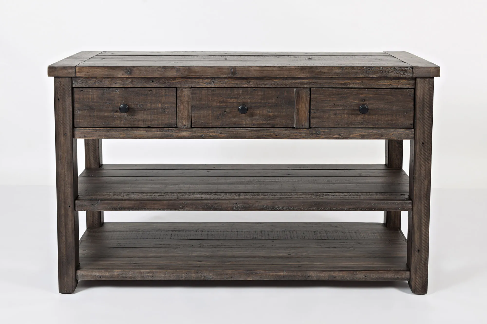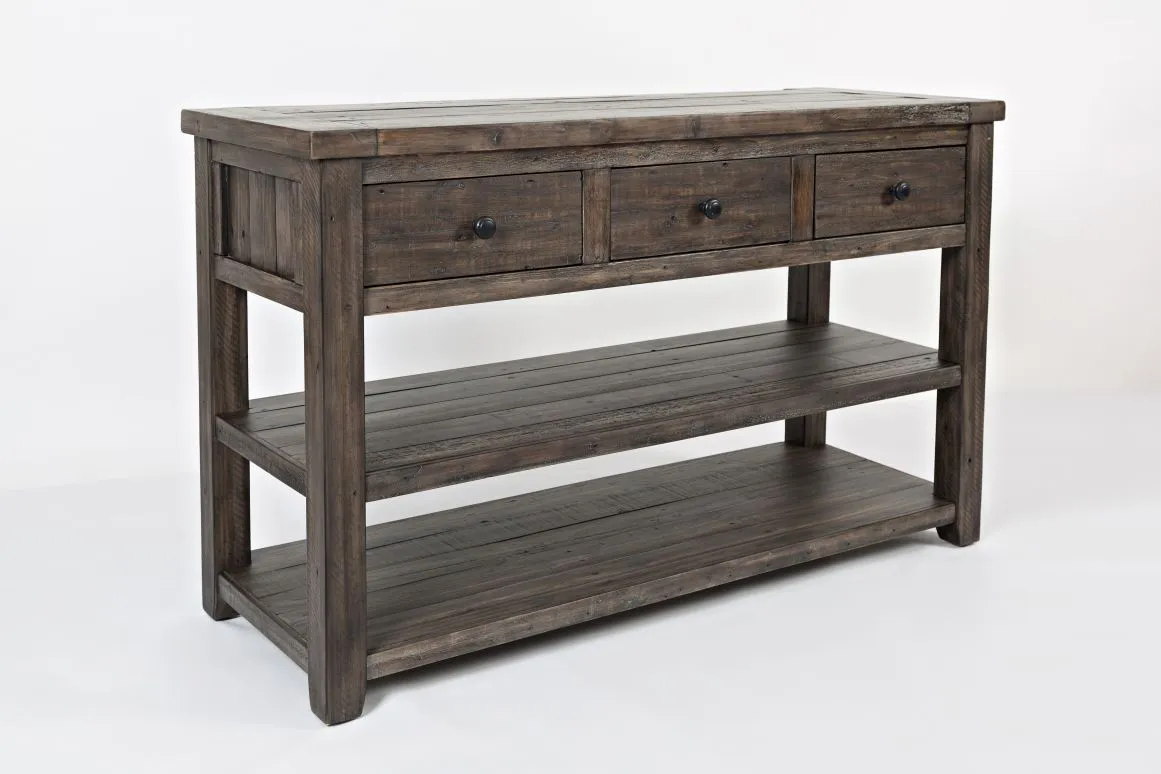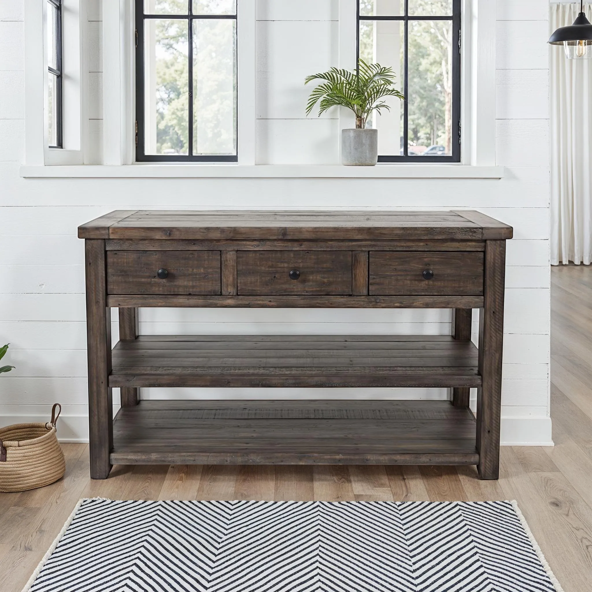 Experience the elegance of rustic farmhouse craftsmanship with the Madison County Collection. Made from solid reclaimed Pine, each piece showcases the natural beauty of the wood through unique weathering and intentional stress markings. Upgrade your living room or hallway with the comfortable and sophisticated style of this 50" Madison Counry Reclaimed Sofa Console Table. With two built-in storage shelves and three drawers, this is a perfect relaxed addition to your home.