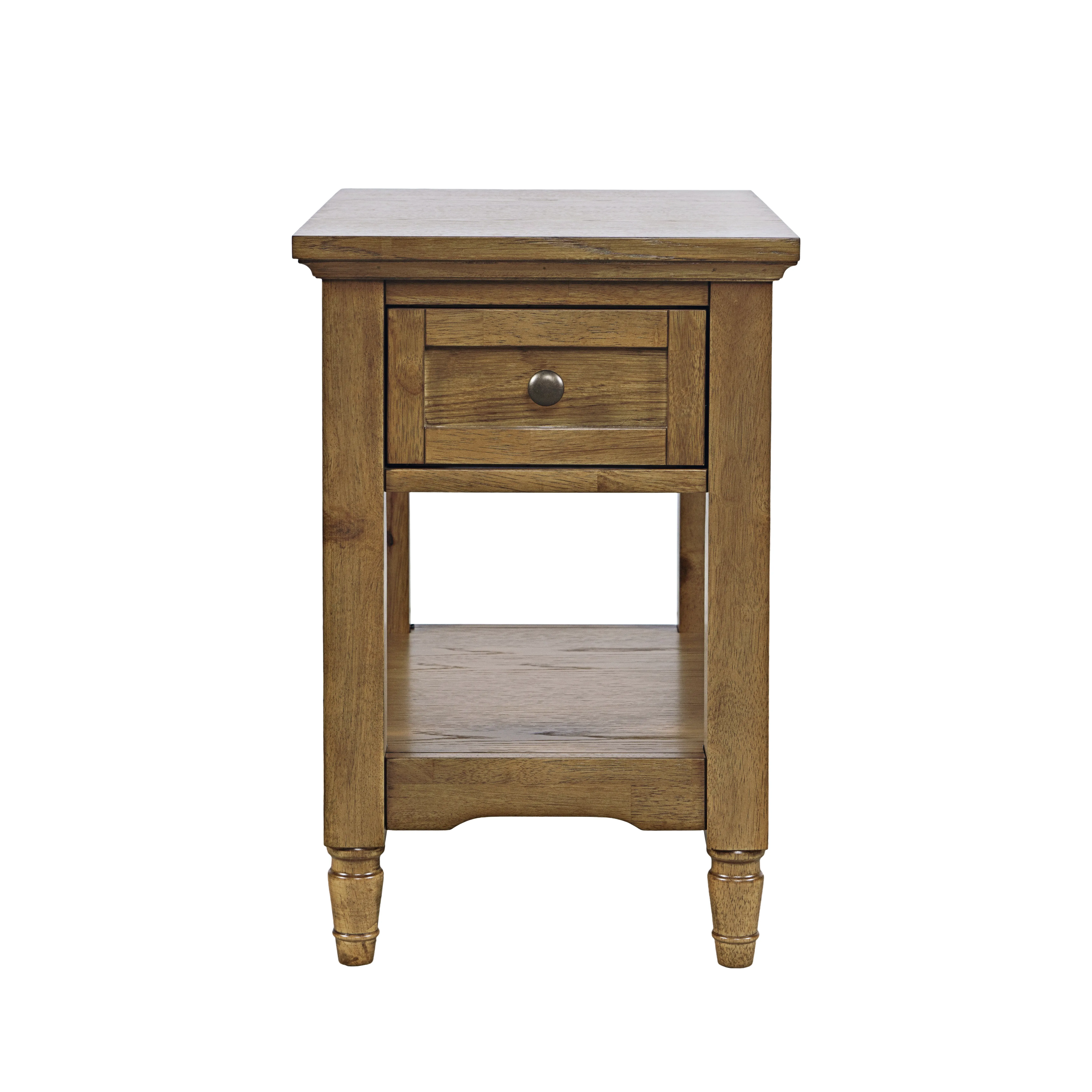 The Brentwood Transitional Chairside End Table With Drawer And Shelf - Cascade Oak by Jofran may be available at Old Brick Furniture & Mattress Co. in the
