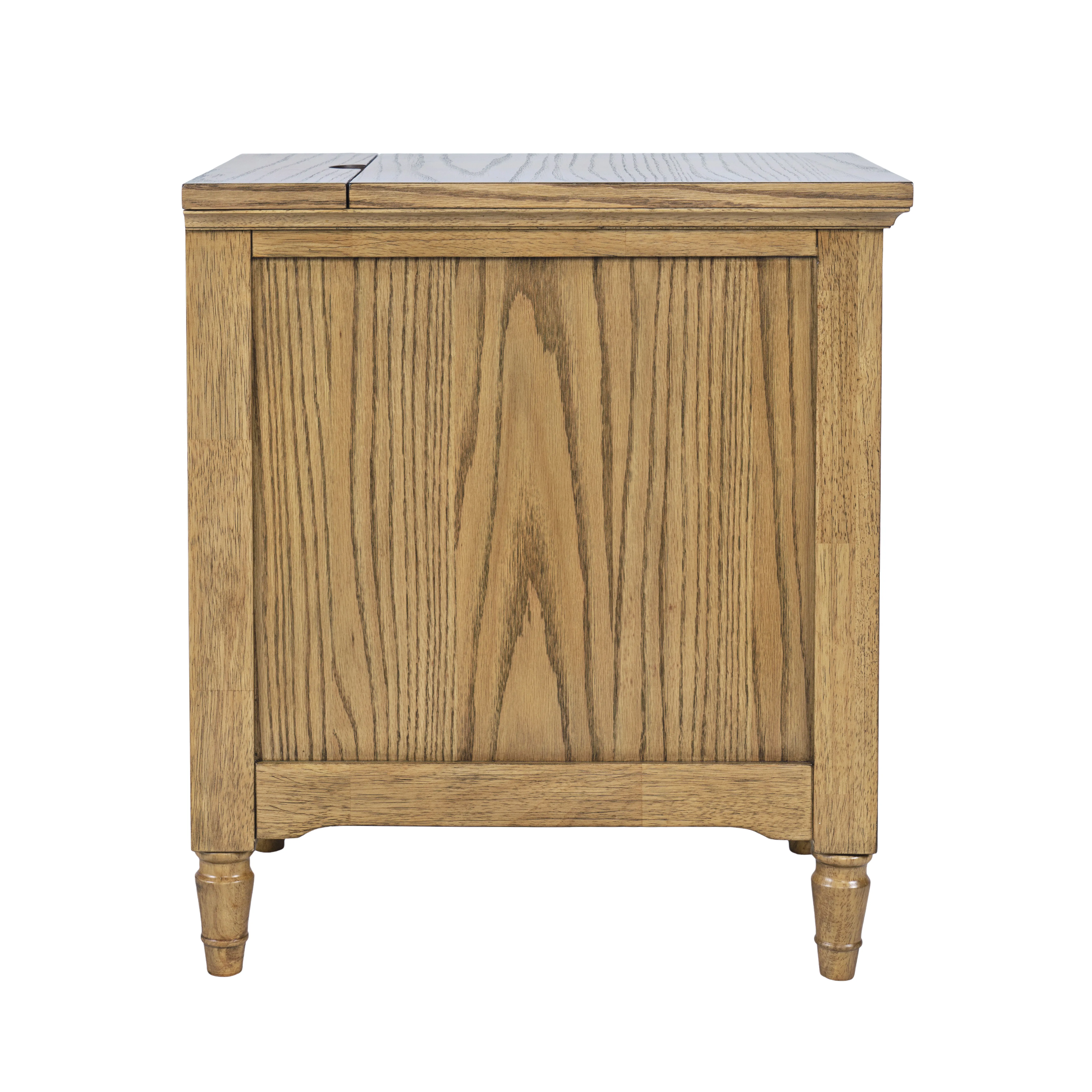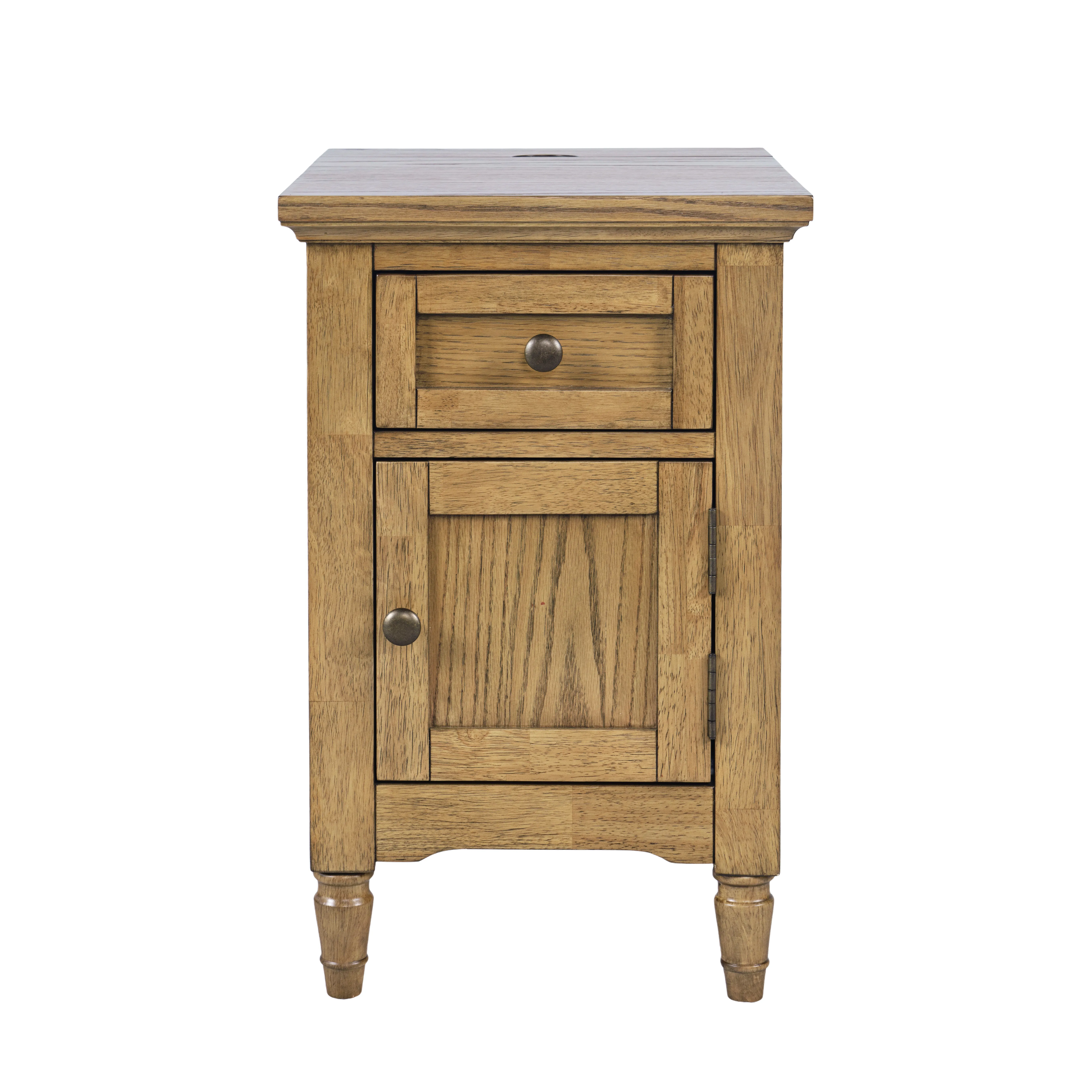 The Brentwood Transitional USB Charging Storage End Table blends classic styling with essential modern convenience, making it a standout companion piece for any living space. Crafted from durable rubberwood and oak veneer, this end table showcases a warm, refined finish that highlights the wood’s natural grain. Its compact scale is perfect beside a sofa, chair, or bed, offering a spacious top surface plus hidden cabinet storage to keep essentials neatly tucked away. A built-in USB charging port adds contemporary functionality, making it ideal for today’s connected homes.