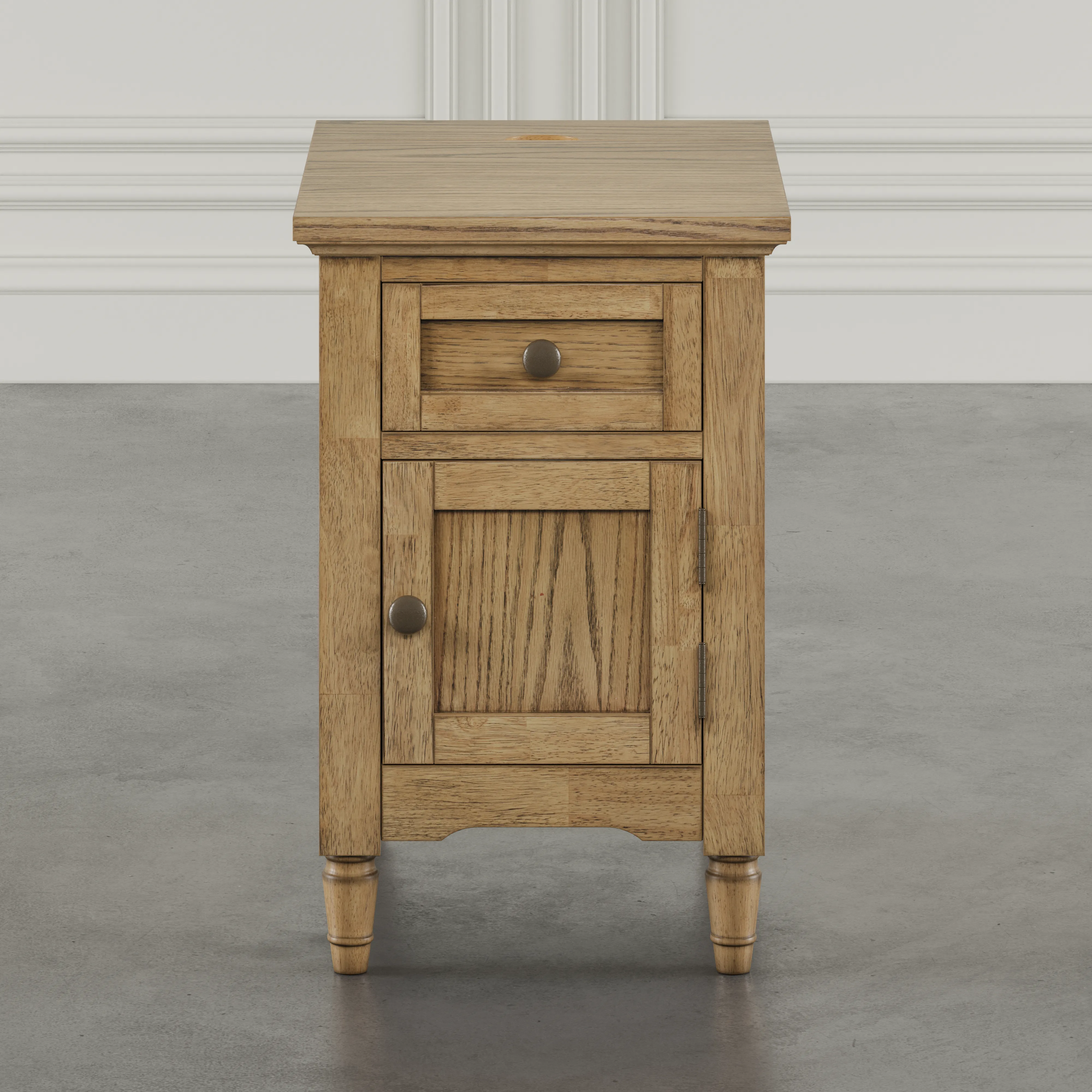 The Jofran Brentwood USB Charging Storage End Table offers a transitional look with practical modern features, including built-in USB charging and an enclosed storage cabinet. Available in Arbor Oak and Cascade Oak finishes, this compact wood end table is perfect for living rooms, bedrooms, or small spaces needing both style and function.